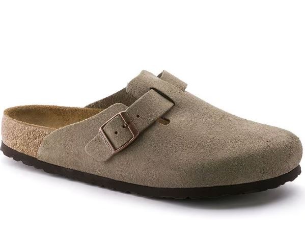 Boston Dark Taupe Suede Clogs Slip-On Mules Soft Footbed Sandal Casual Shoes NEW