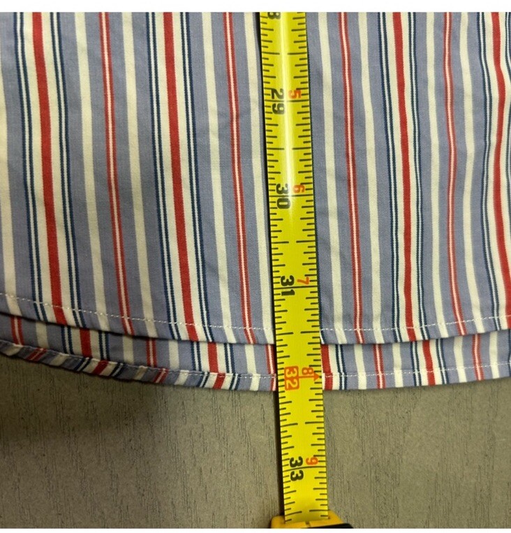 как выглядит Ralph Lauren Mens 17 1/2 34/35 Red White Blue Striped Button Down Casual Shirt фото
