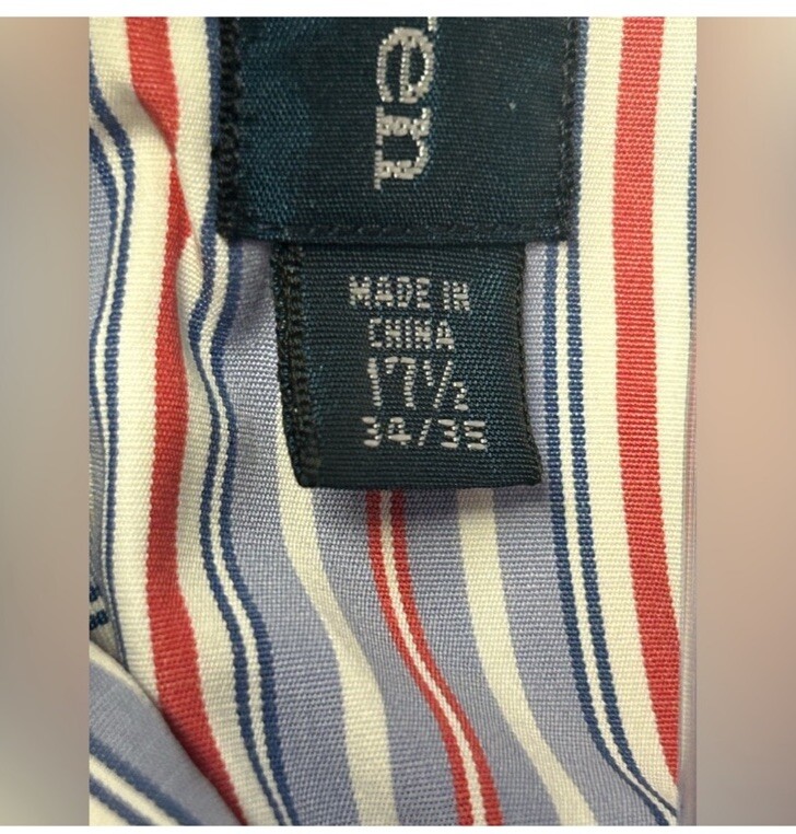 Ralph Lauren Mens 17 1/2 34/35 Red White Blue Striped Button Down Casual Shirt