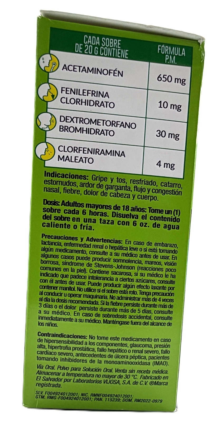 VIROGRIP TE LIMON PM NOCHE Gripe tos Flu Congestion Nasal Fiebre Dolor Cabeza 24