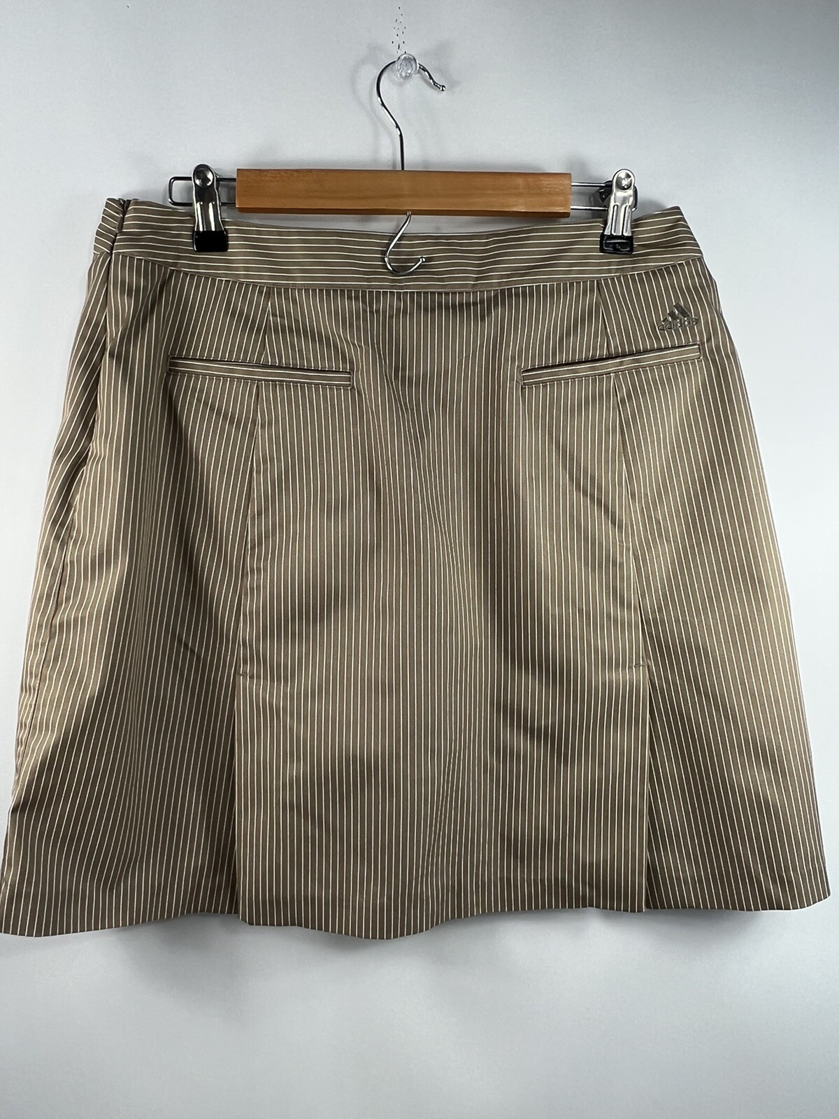 Adidas Climacool Tennis Skirt Sz 10 Tan White pen Striped Golf Skort