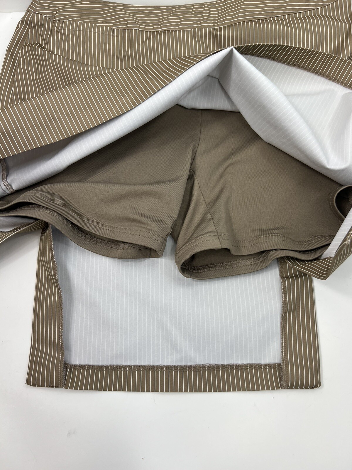 как выглядит Adidas Climacool Tennis Skirt Sz 10 Tan White pen Striped Golf Skort фото