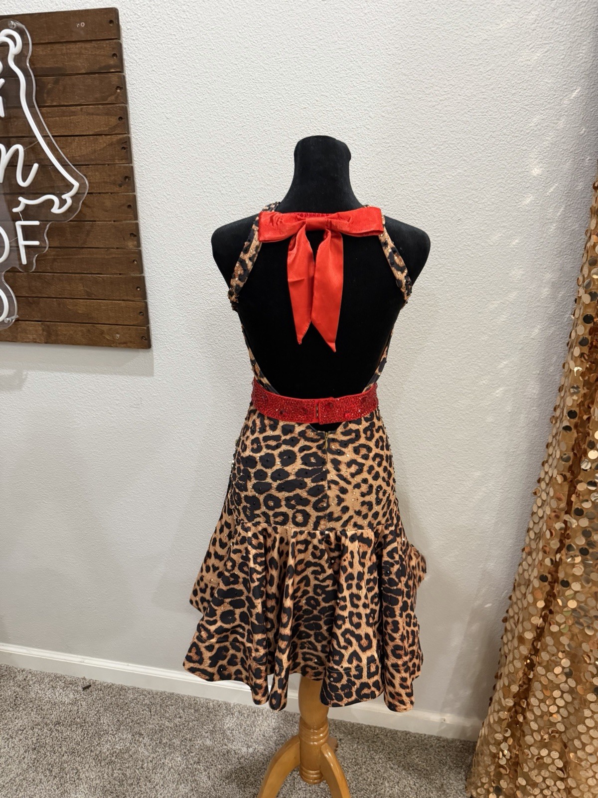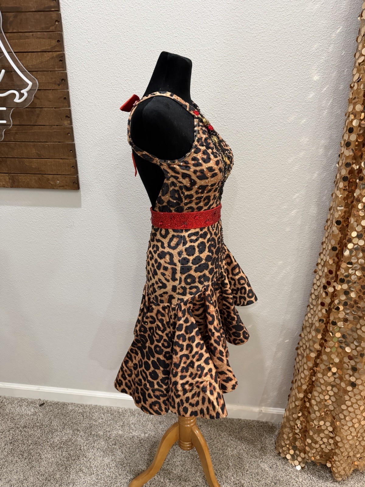 как выглядит Leopard Animal Print Brown Black Red Accents Fringe Ballroom Latin Dance Dress фото