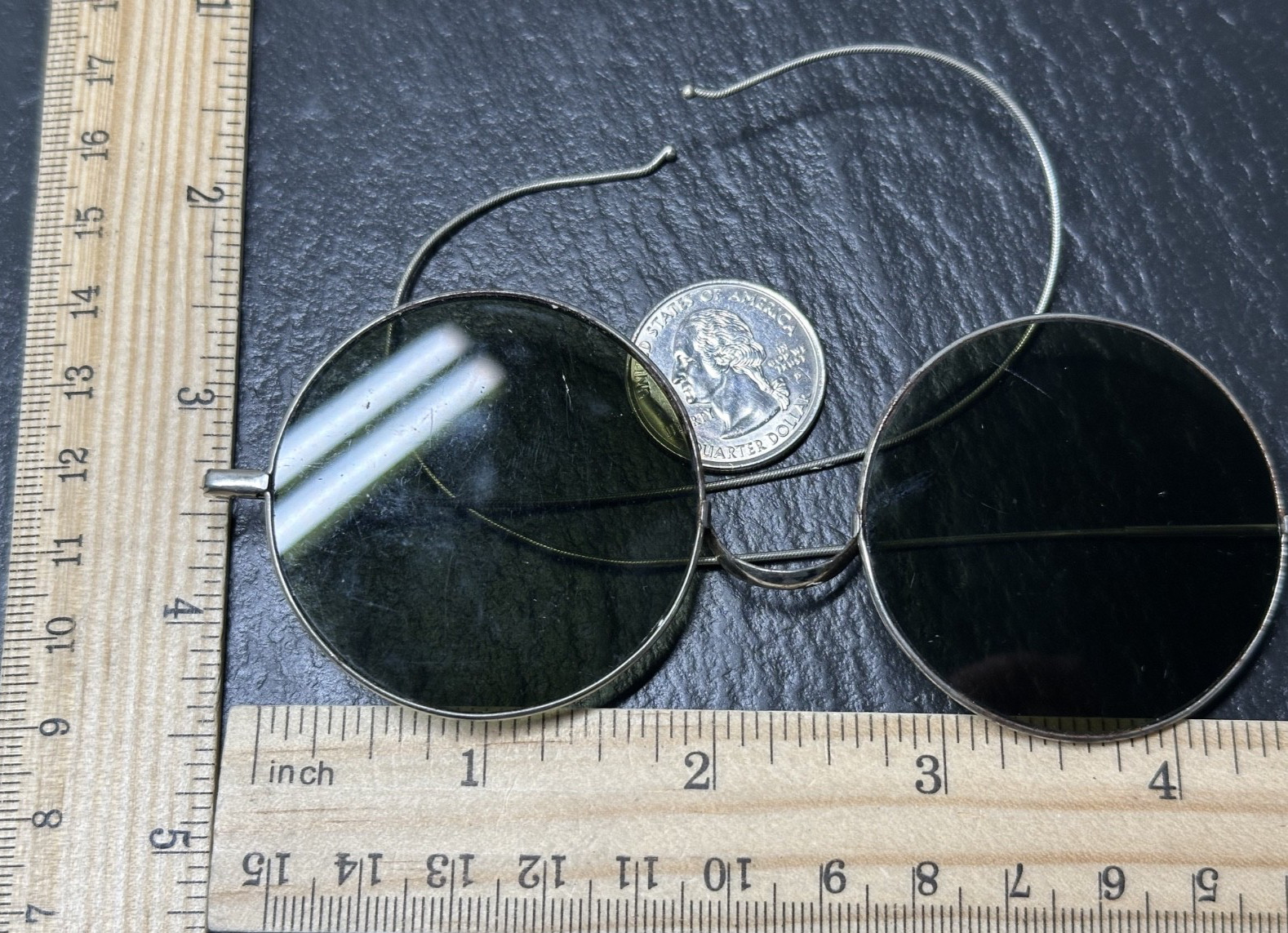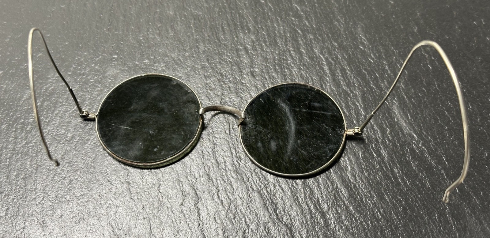 как выглядит ANTIQUE SILVER TONE ROUND RIM OLIVE TONE LENS SUNGLASSES M657 фото