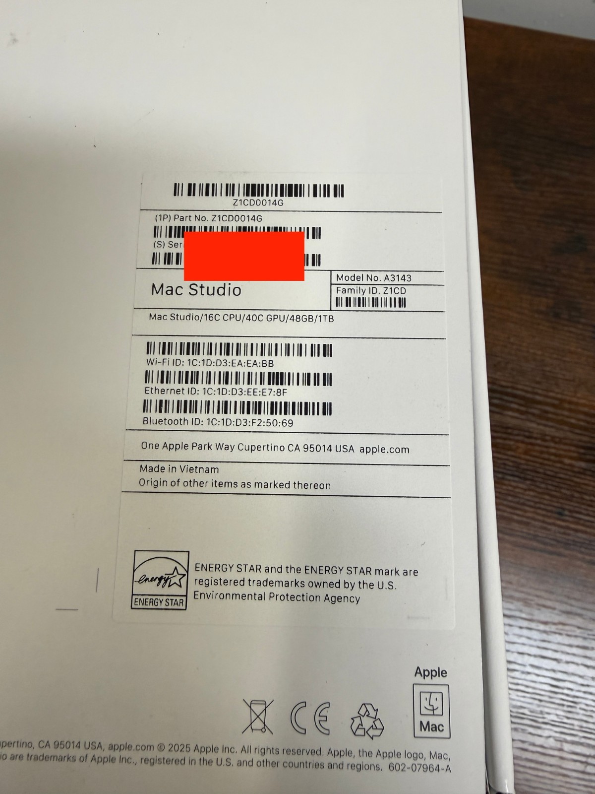 Mac Studio M4 Max A3143 Box Only, with Outer Box.