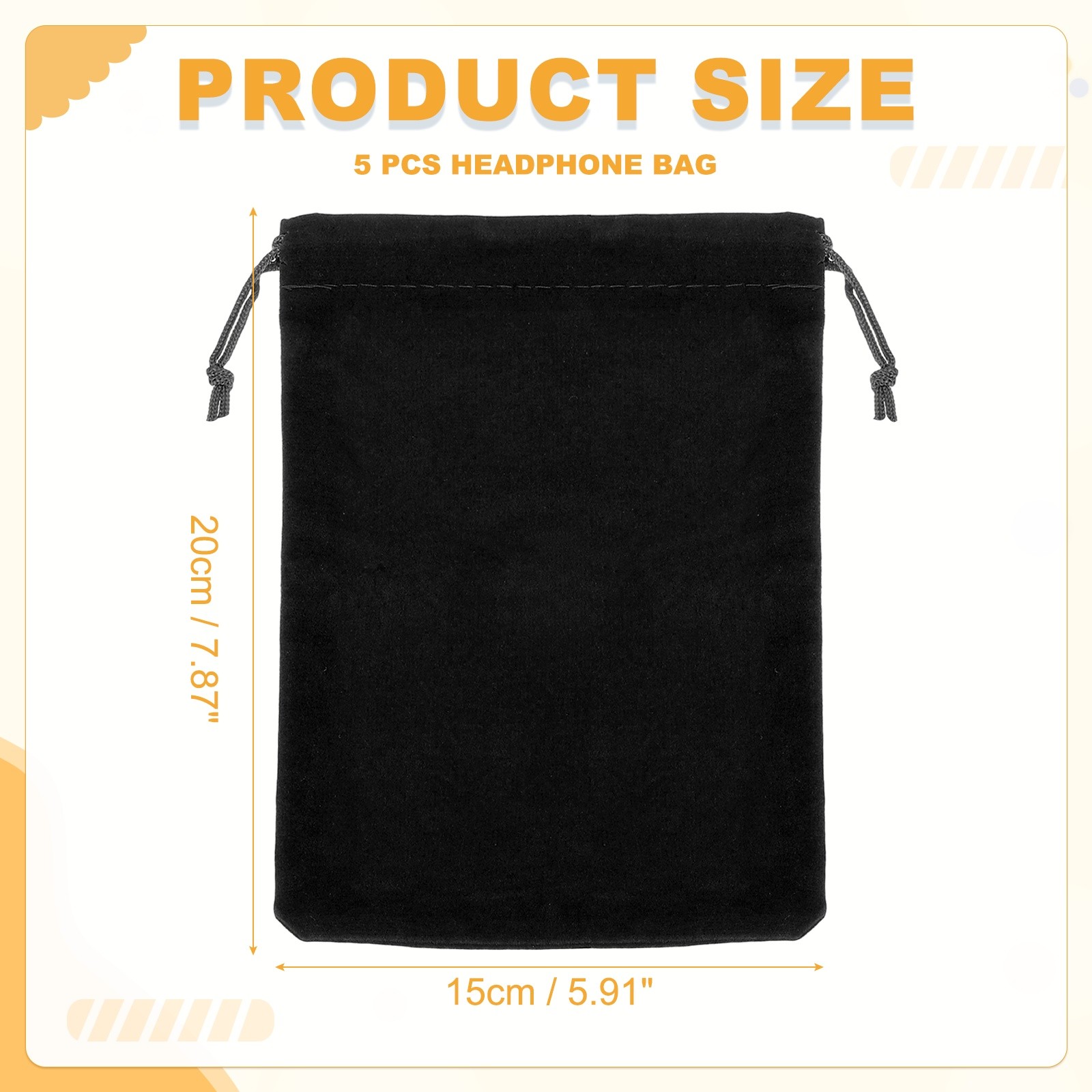 Headphone Bag, 5 Pcs 7.87x5.91 Inch Headset Carrying Pouch Black