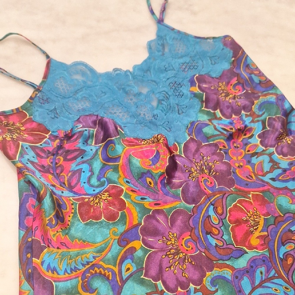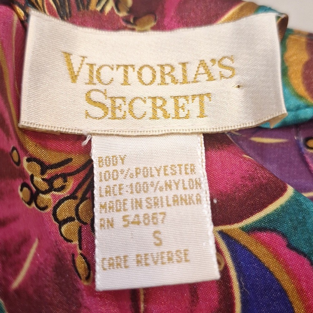Vintage Victoria's Secret Gold Tag Floral 90s Gown Sz S Loungerie Blue Lace Top