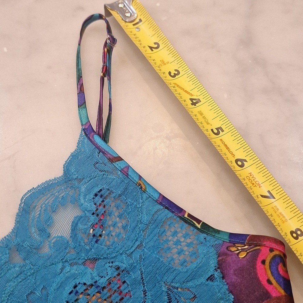 как выглядит Vintage Victorias Secret Gold Tag Floral 90s Gown Sz S Loungerie Blue Lace Top фото