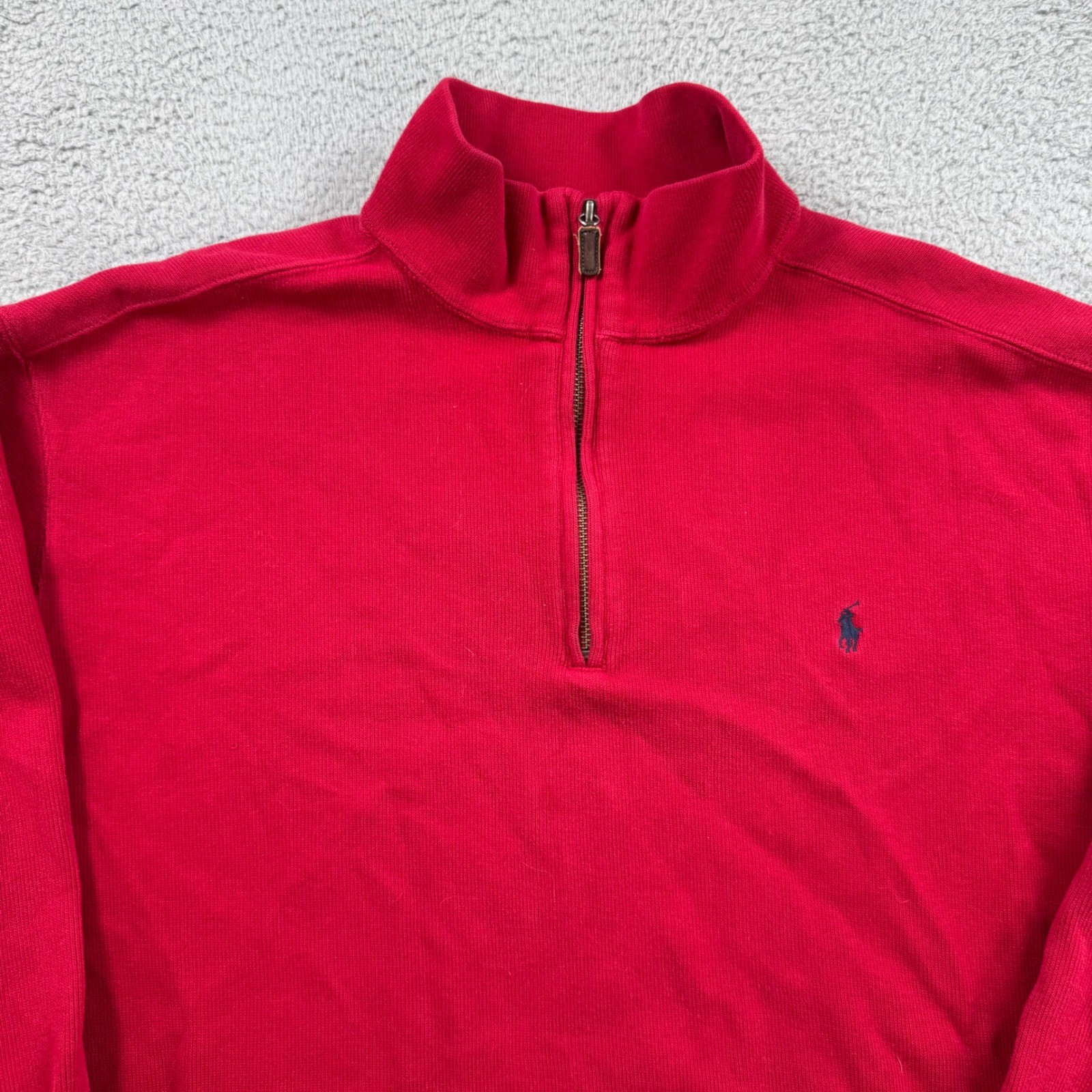 как выглядит Polo Ralph Lauren Mens Red Quarter Zip Pullover Sweatshirt Size XL Cotton фото