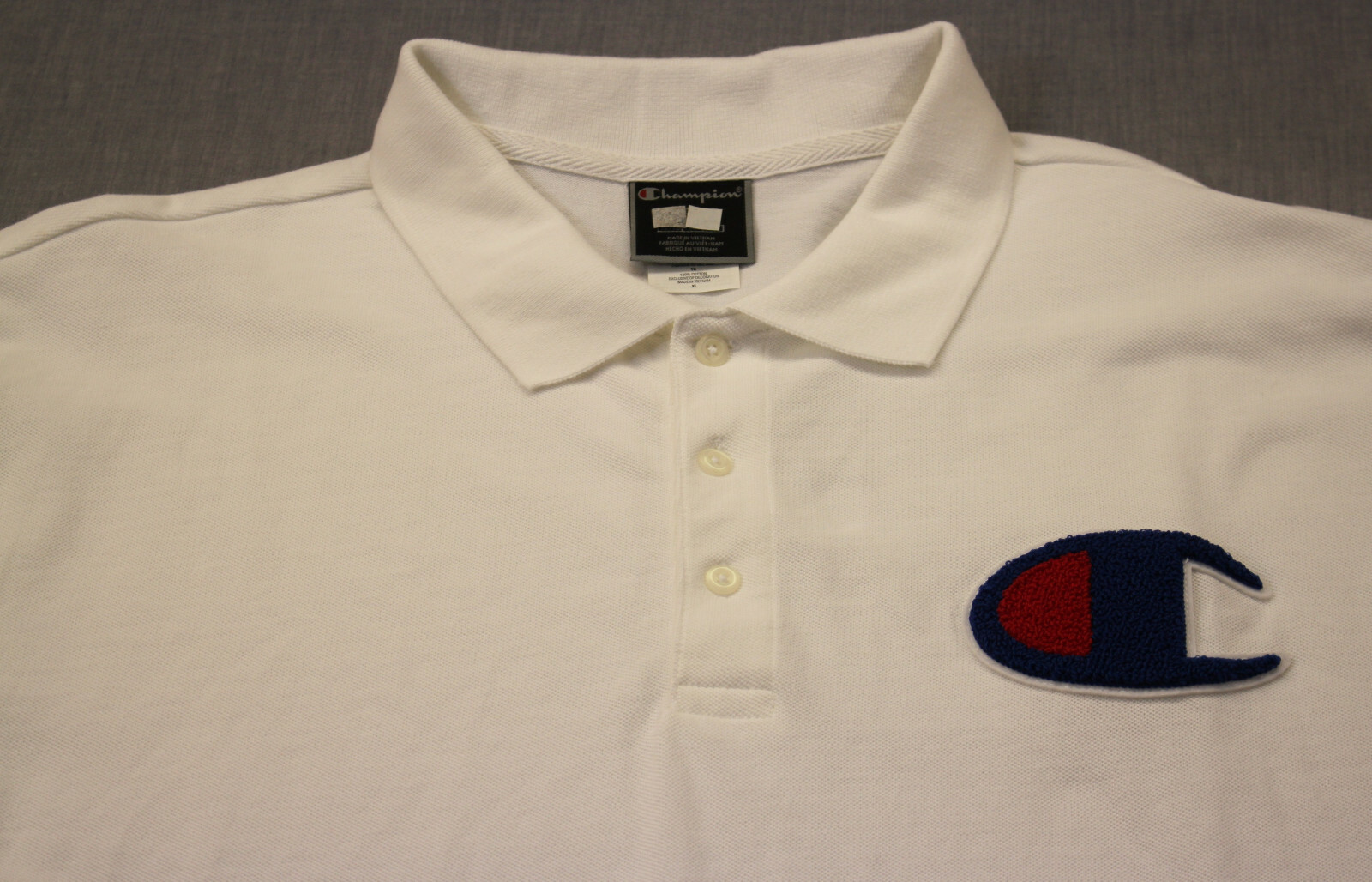 как выглядит Champion Mens White Huge Logo Back Front Cotton SS Polo Shirt NWT S XL фото