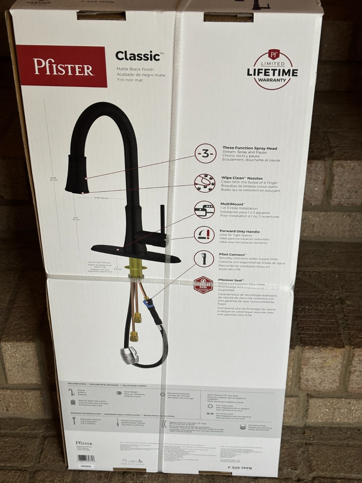 как выглядит Pfister Classic Matte Black Single Handle Pull Down Kitchen Faucet F-529-7PFB фото
