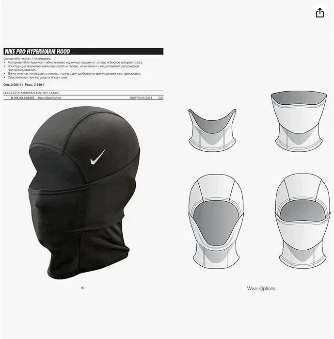 как выглядит Nike Pro Therma-FIT HyperWarm Hood Balaclava Black Unisex Cold Weather Face Mas фото