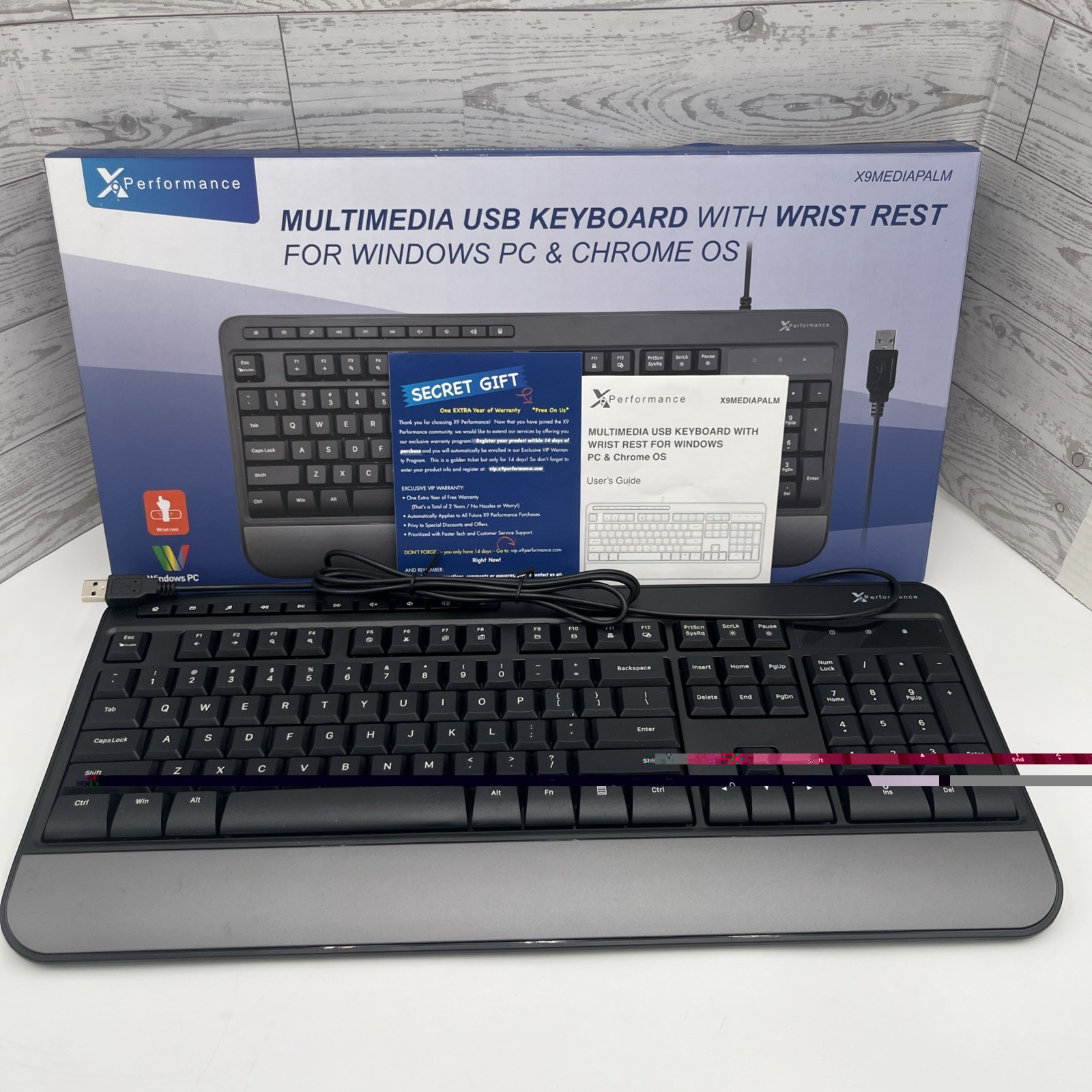X9 Ergonomic Wired USB Keyboard w/ Wrist Rest, Number Pad Multimedia Keys-NEW