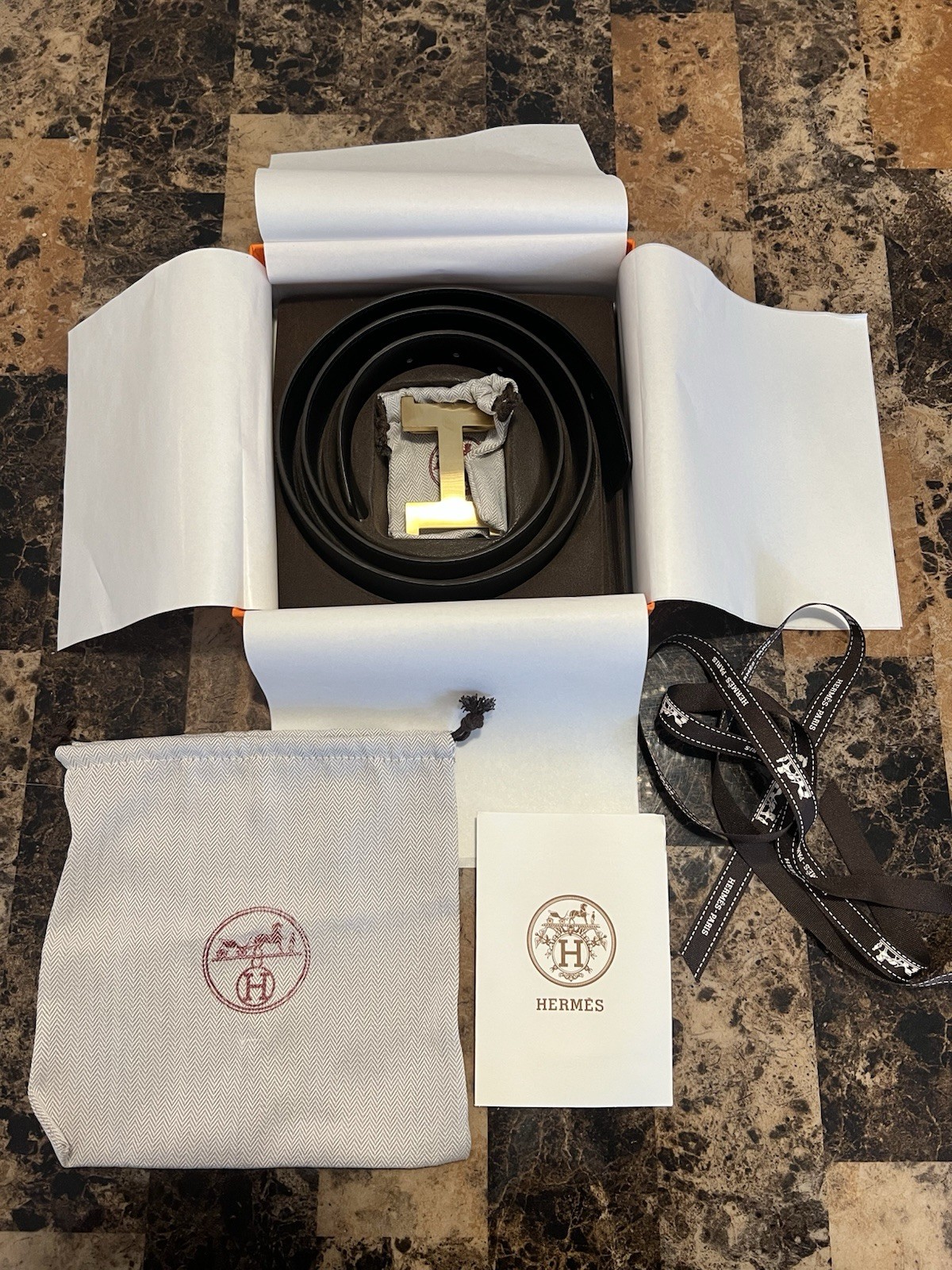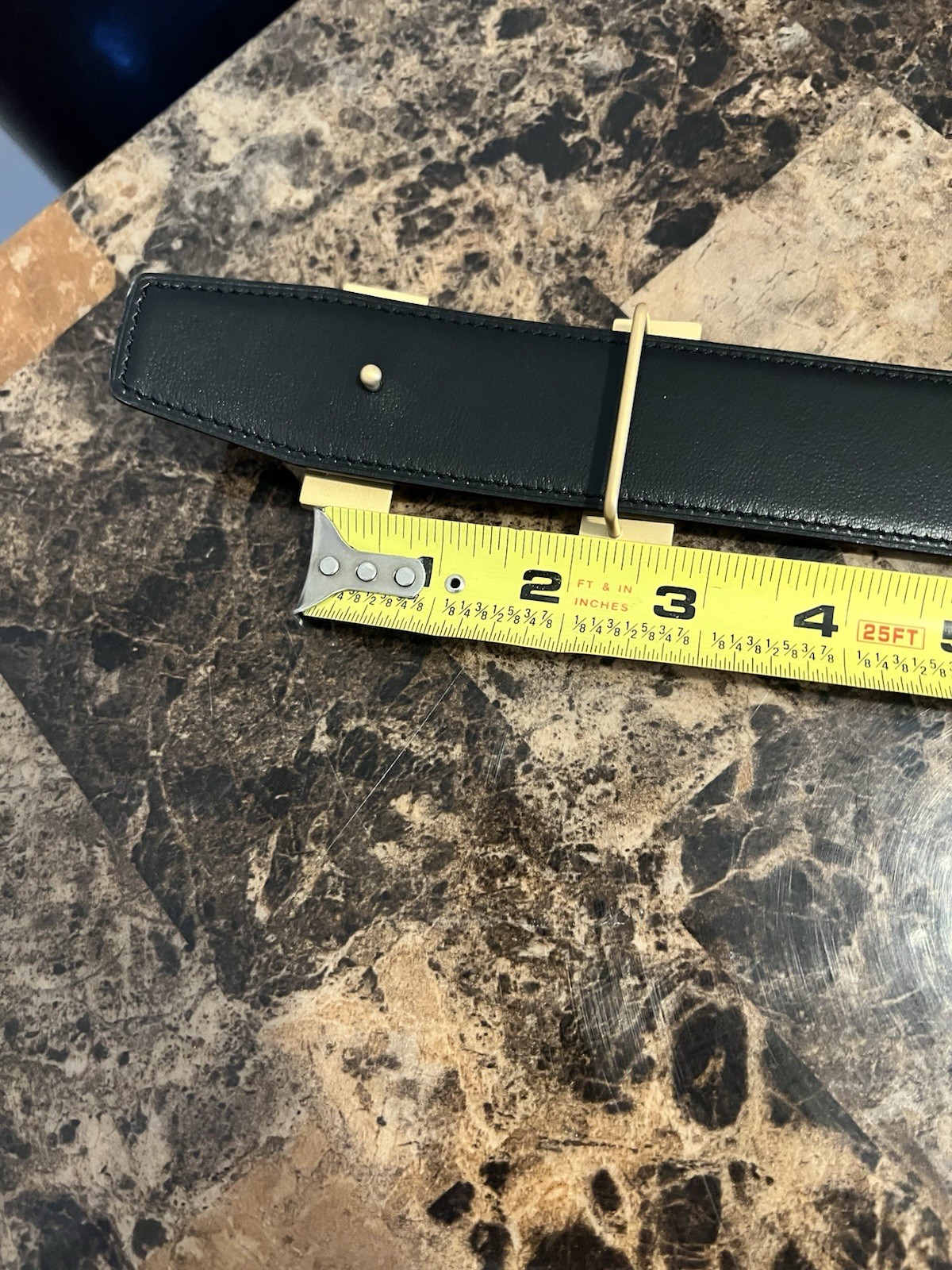 как выглядит Hermes Reversible Solid Black Belt Gold Buckle Size 95 Fits Mens Waist 34-36 фото