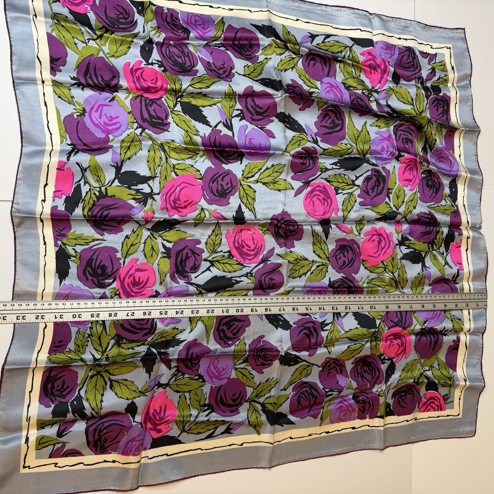 как выглядит Vintage Floral Rose Pink Purple Hand Rolled Scarf 33" Square фото