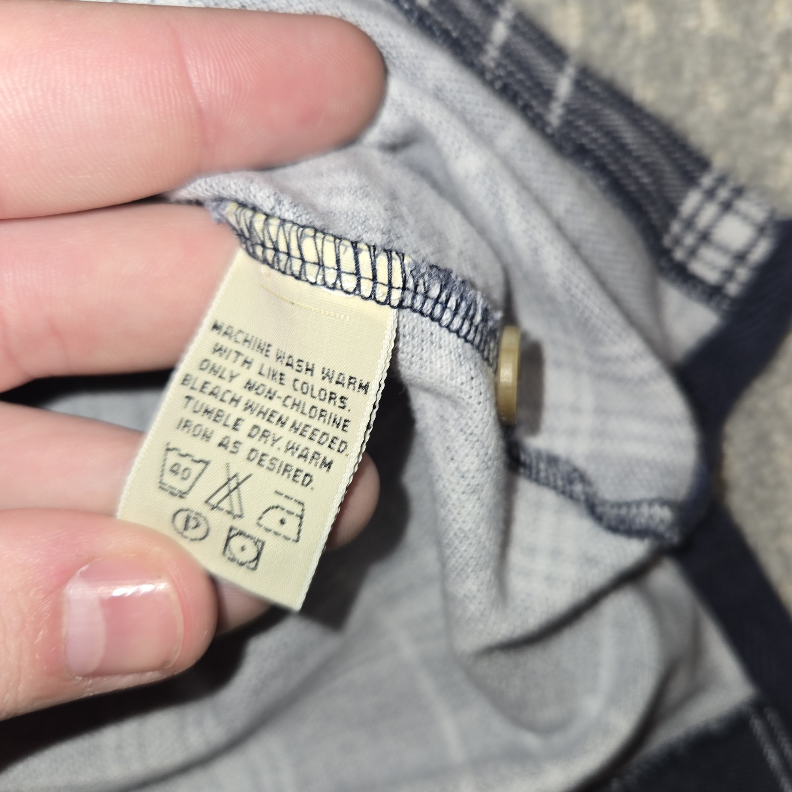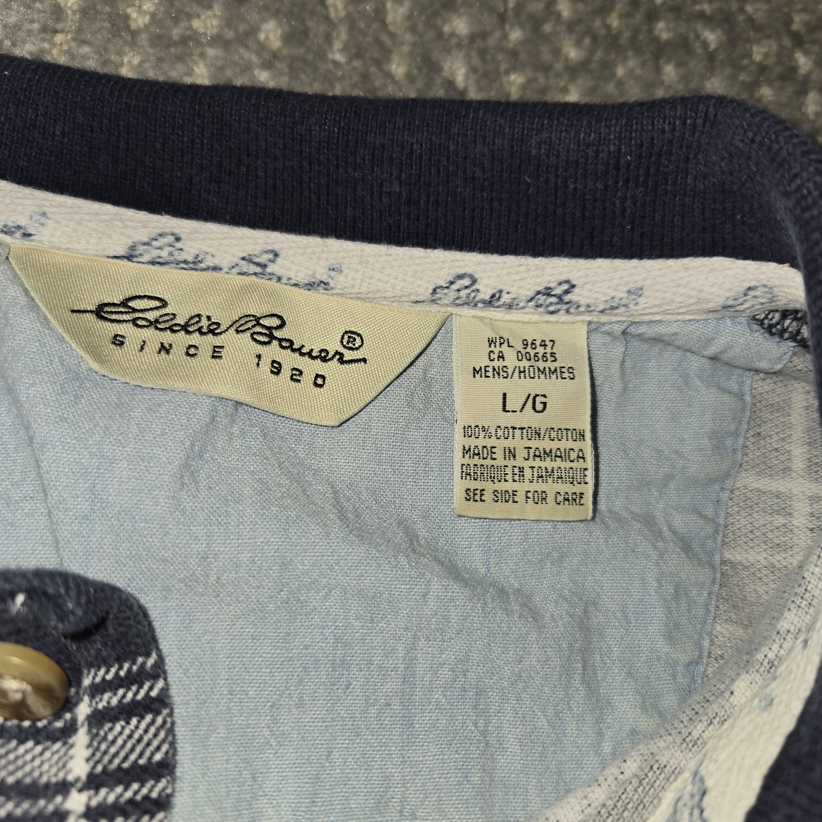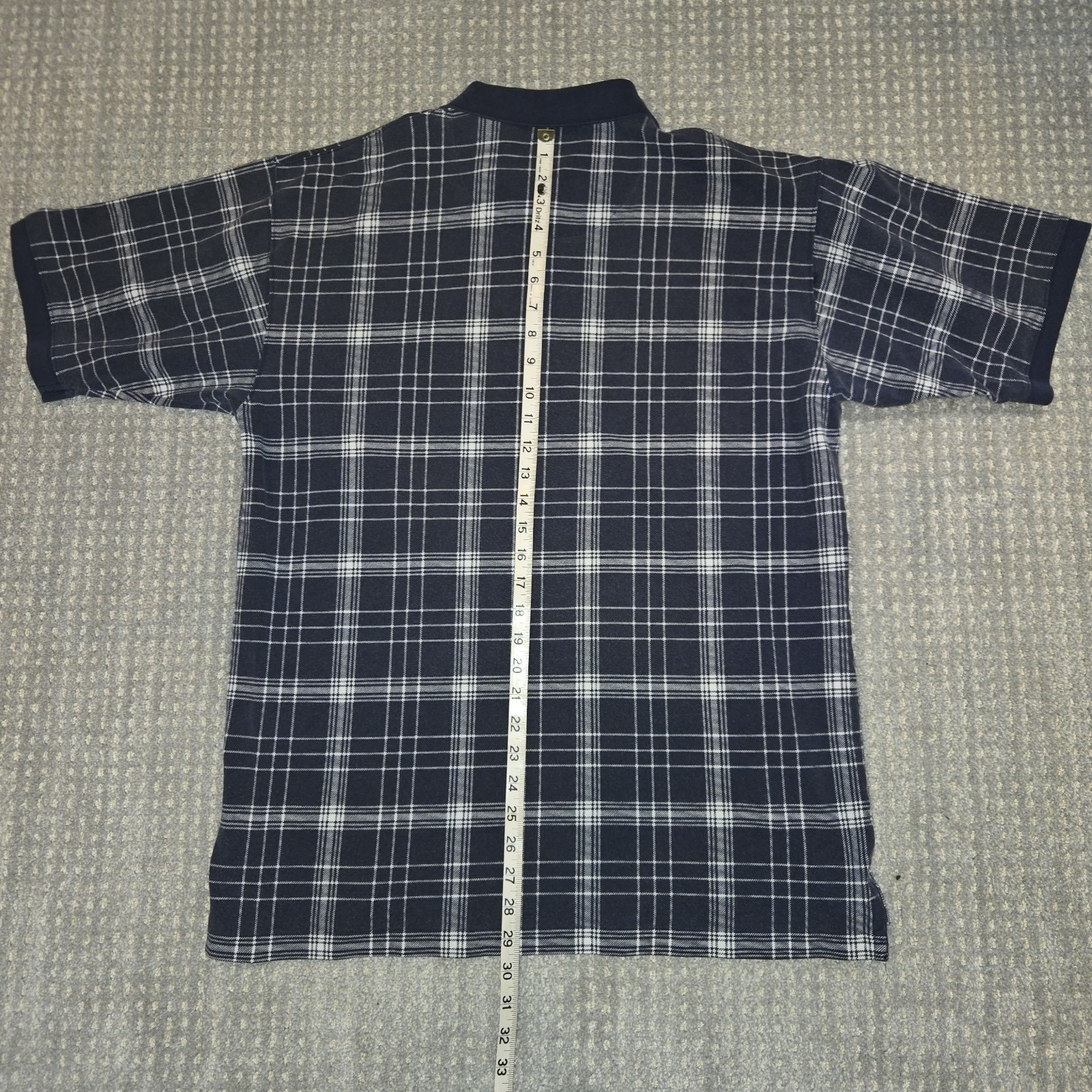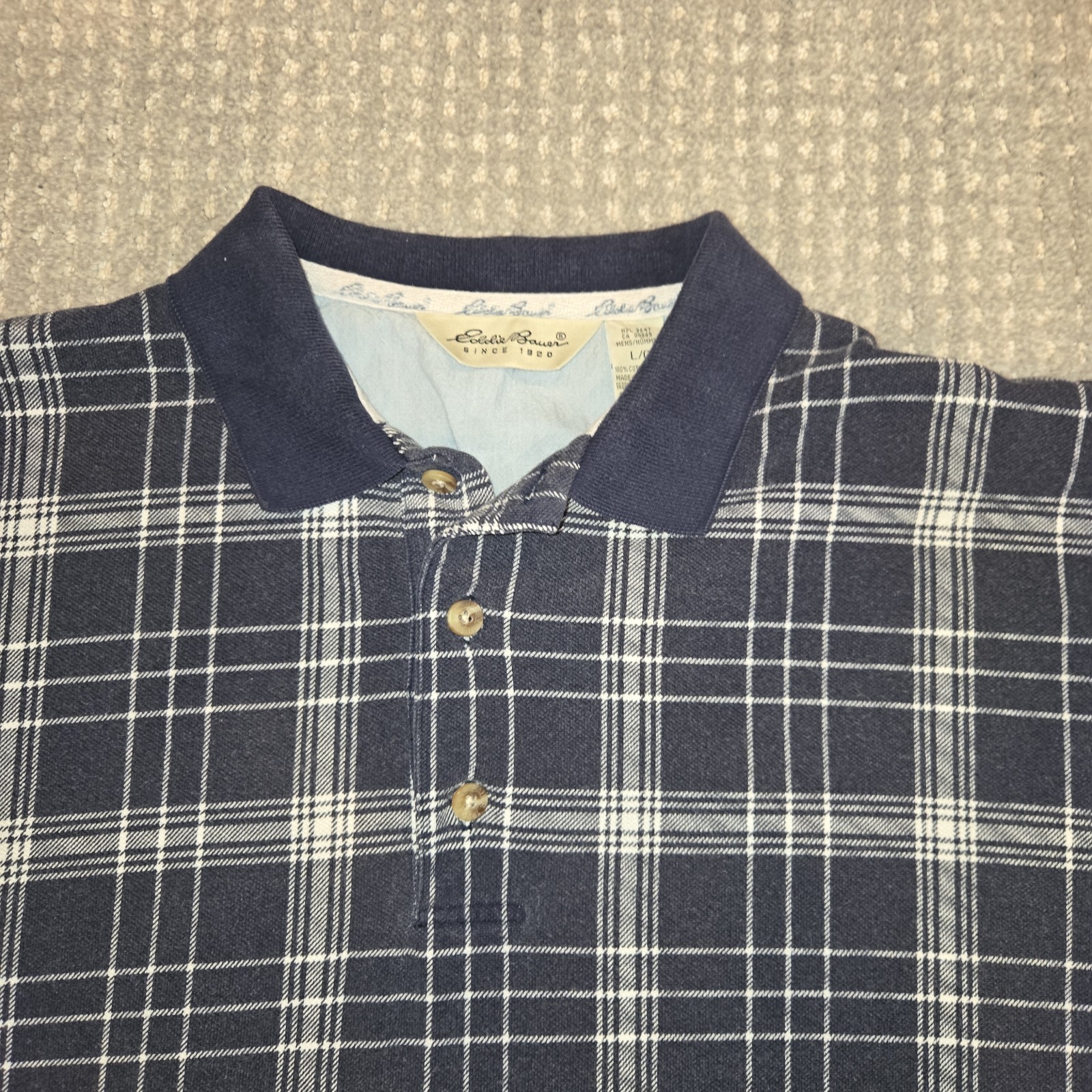 как выглядит Eddie Bauer Vintage 90s Polo Shirt Navy Blue and White Plaid Mens Size Large фото
