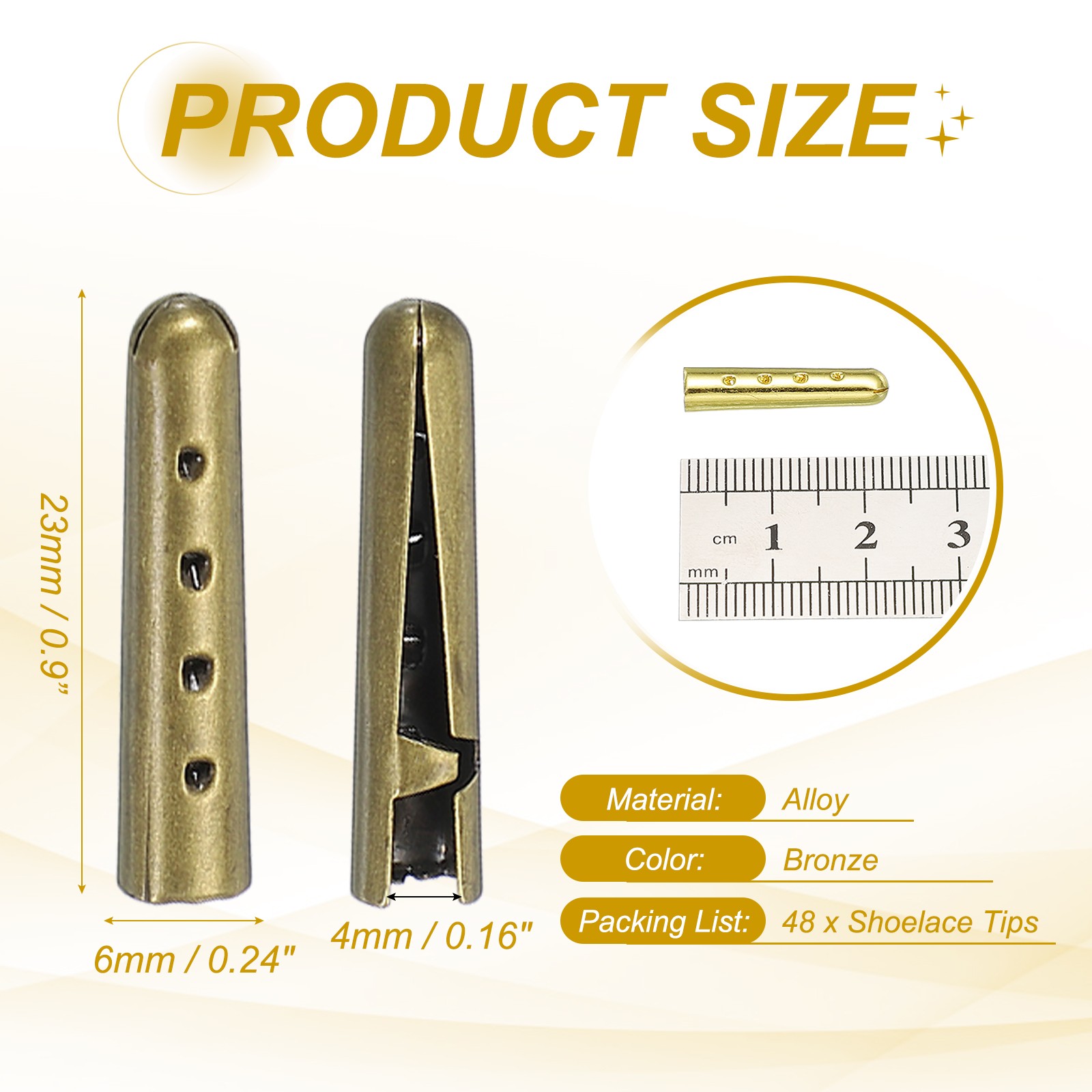 48Pcs 23mm Open Mouth Shoelace Tips Caps, Bronze