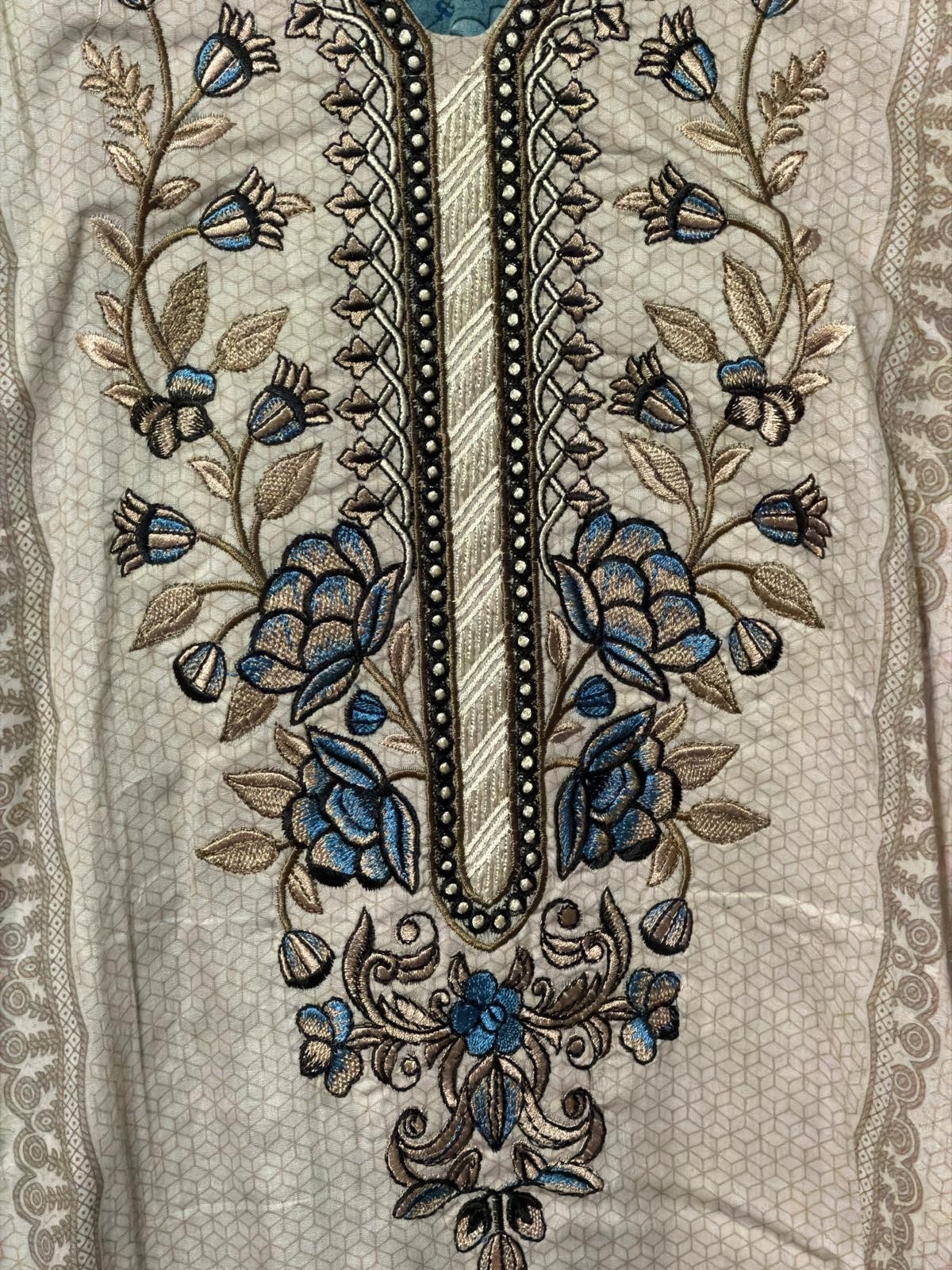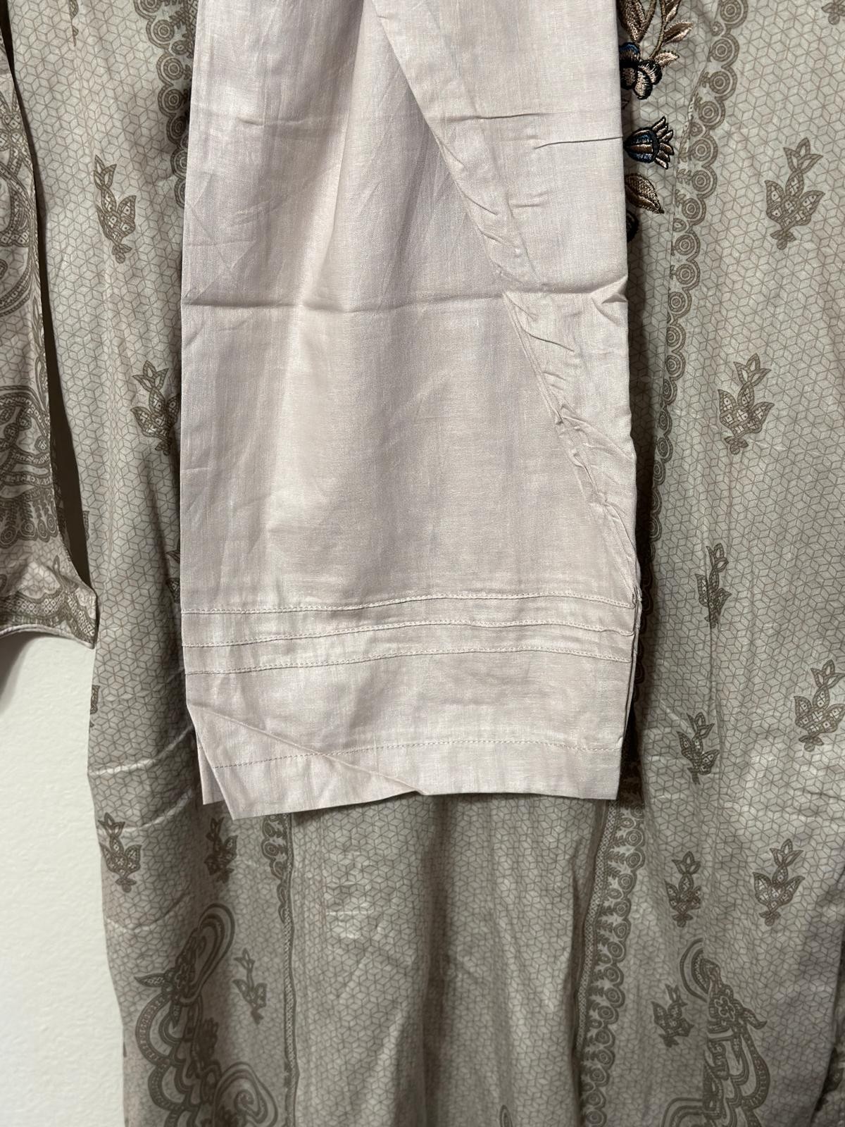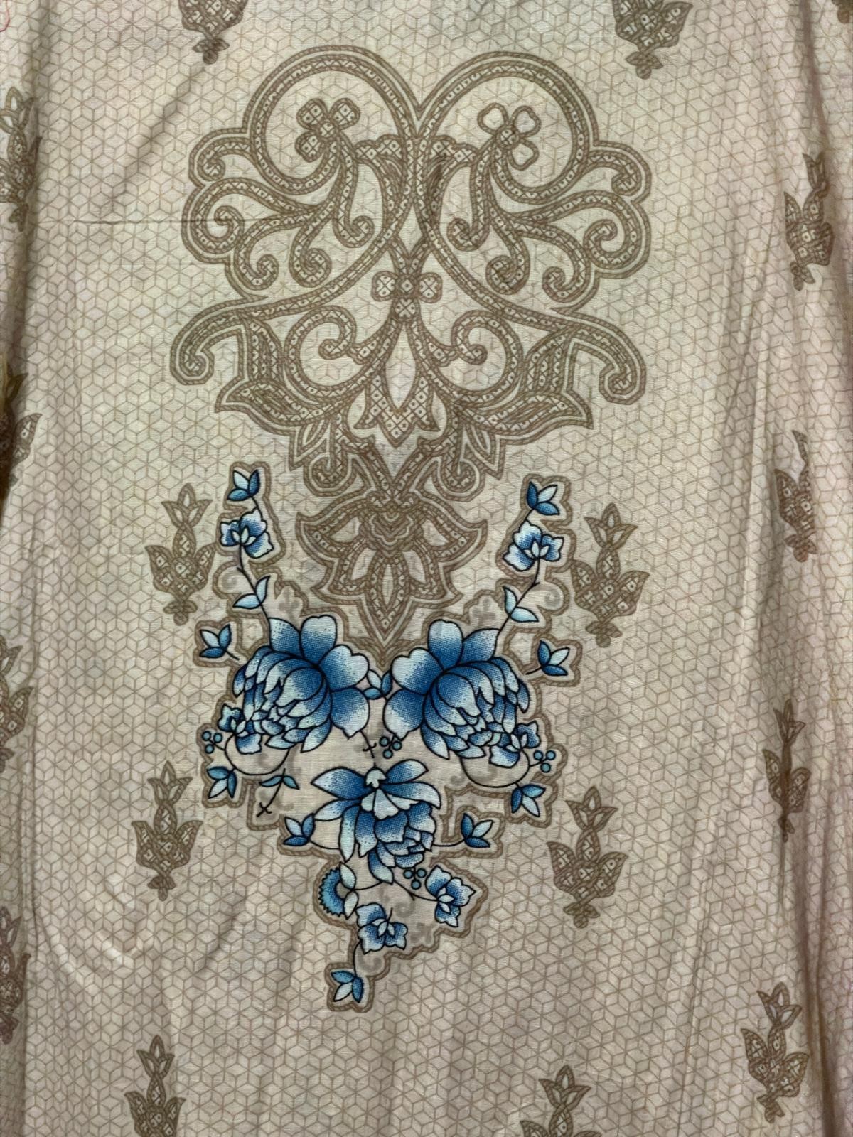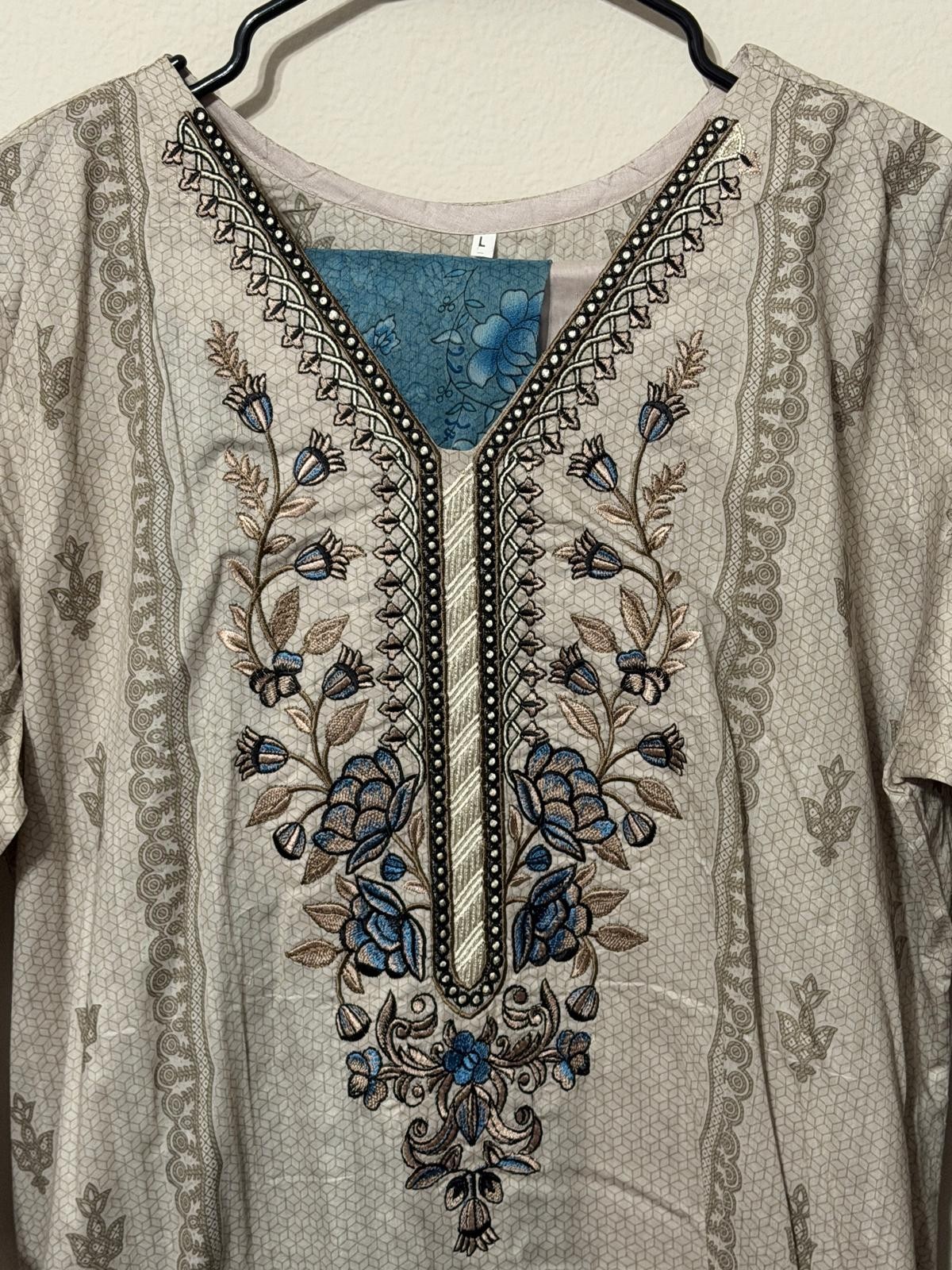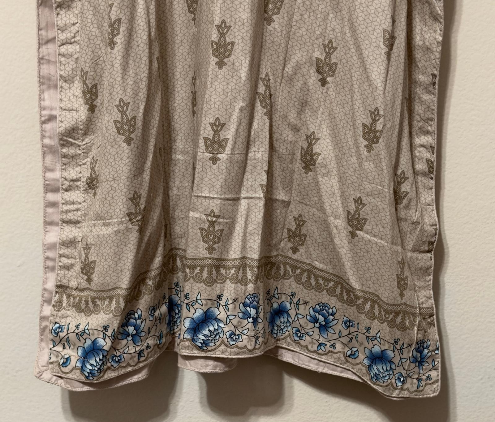 Women's Kurta Long Shirt And Printed Pant Set Light Beige Teal Size XL