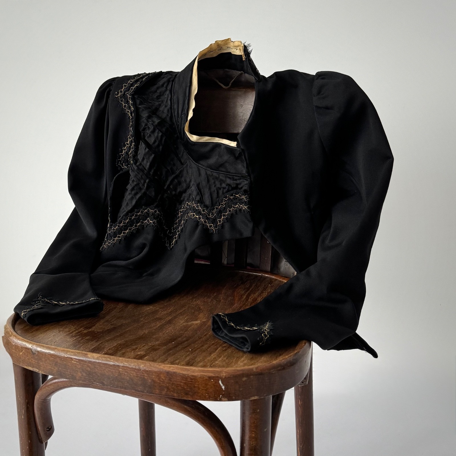 как выглядит 1900s Antique Victorian Black Silk Boned Bodice фото