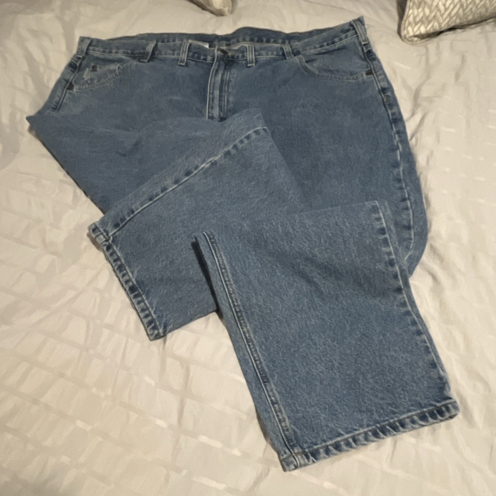 как выглядит Carhartt Mens Blue Denim Straight Jeans Medium Wash Regular Fit 5-Pocket Logo фото