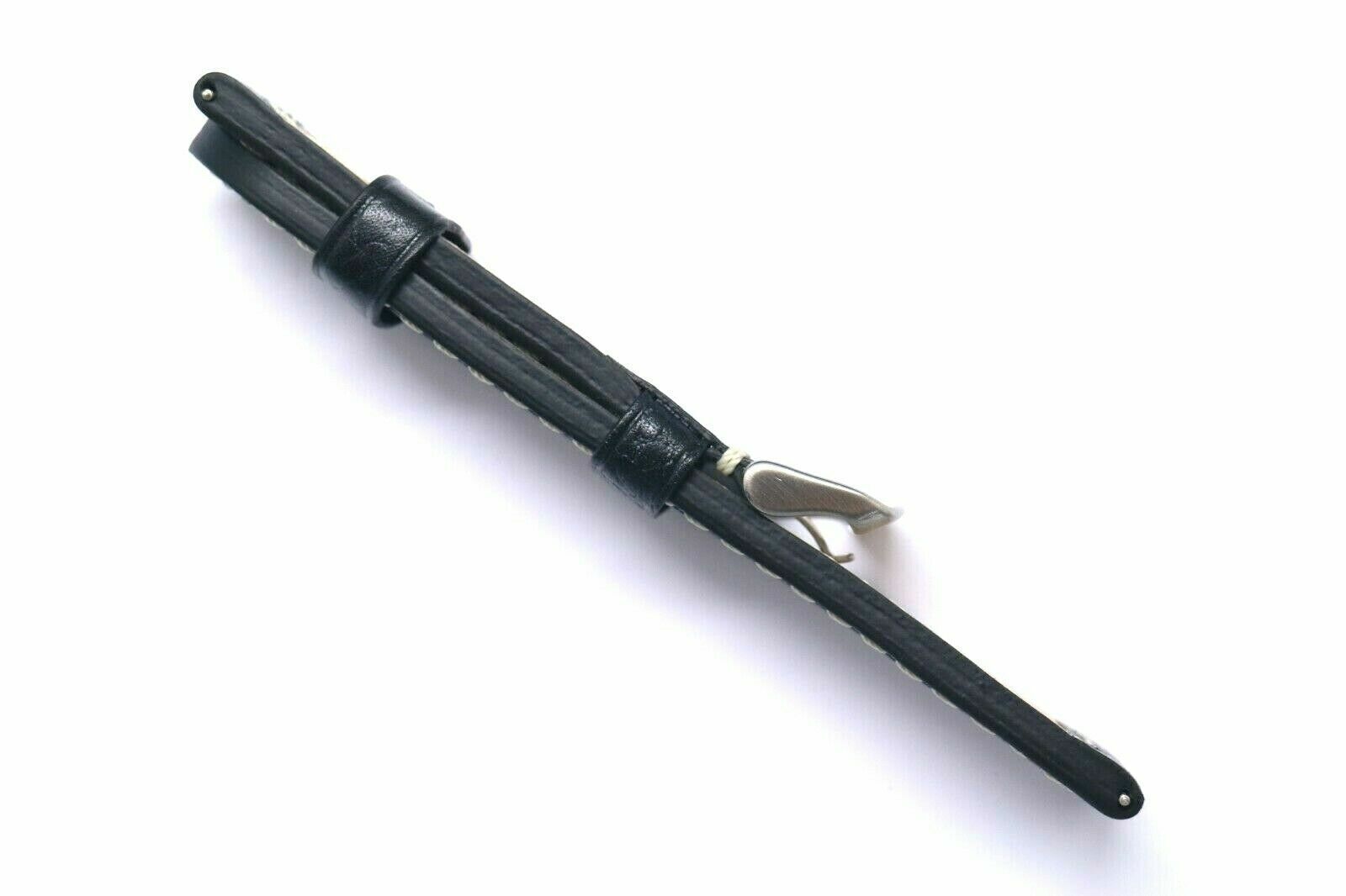 20mm Black Quality Oily Calf Leather Cut edge Men's Watch Band Silver Buckle