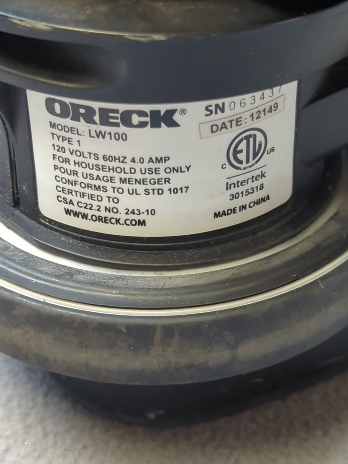 ORECK LW100 Type 1 Magnesium Bag Upright Vacuum Cleaner Tested