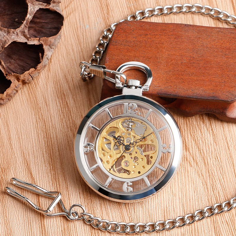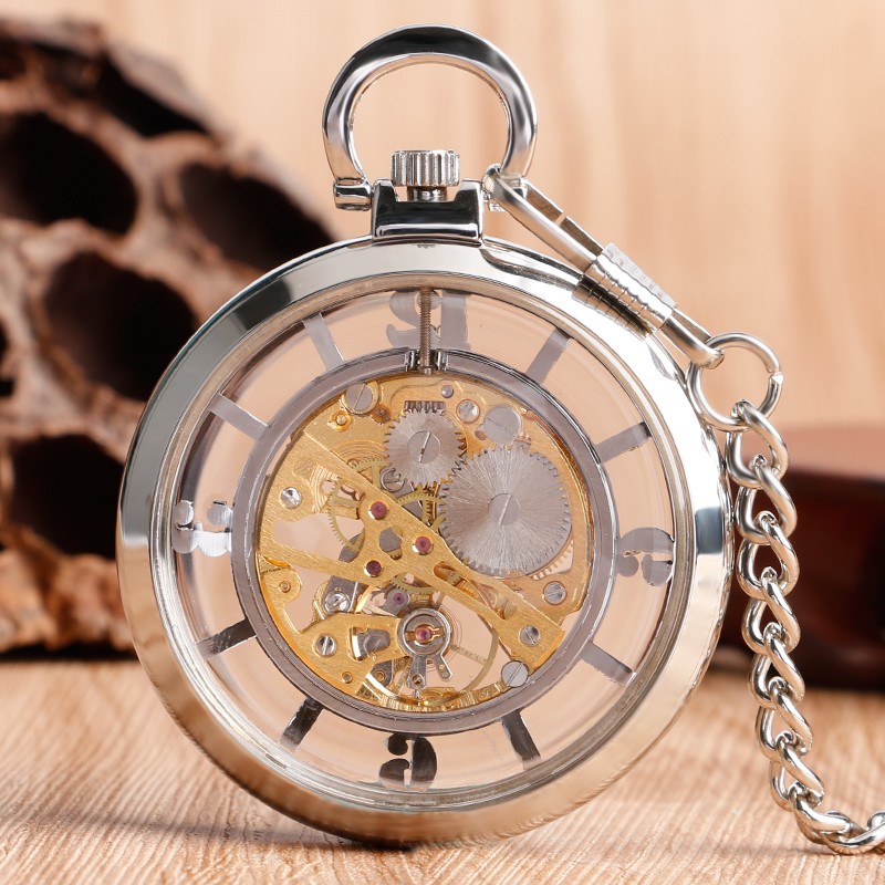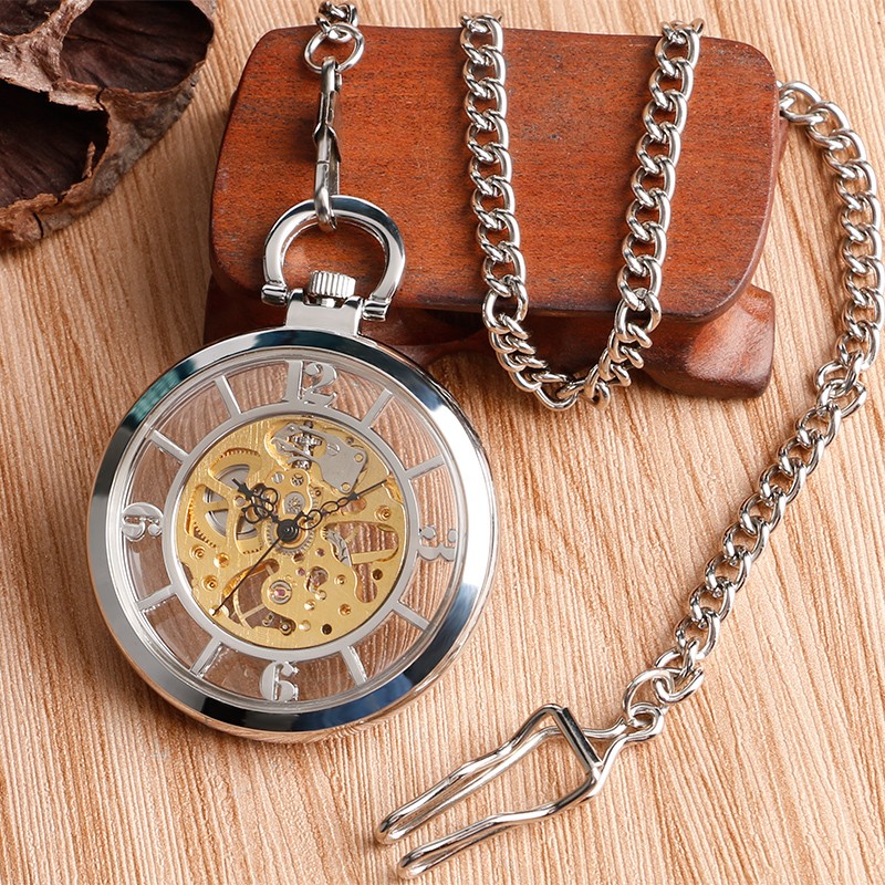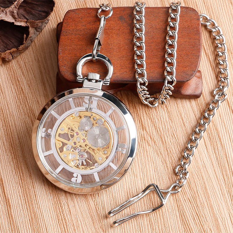 Luxury Open Face Men Women Mechanical Manual Pocket Watch Pendant FOB Chain Gift
