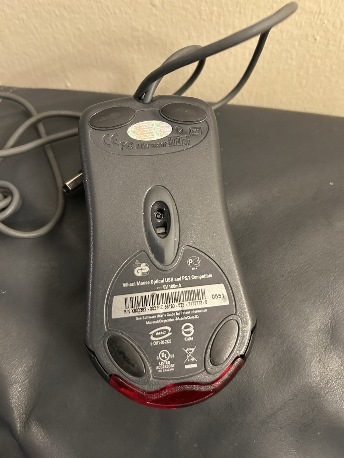 как выглядит Microsoft Wheel Mouse Optical USB X802382 1.1A Black Tested фото