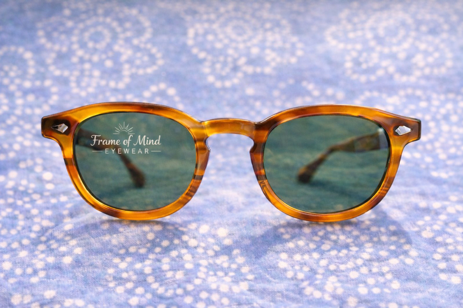 California Prop 65 Warning: handmade green lens sunglasses for unisex