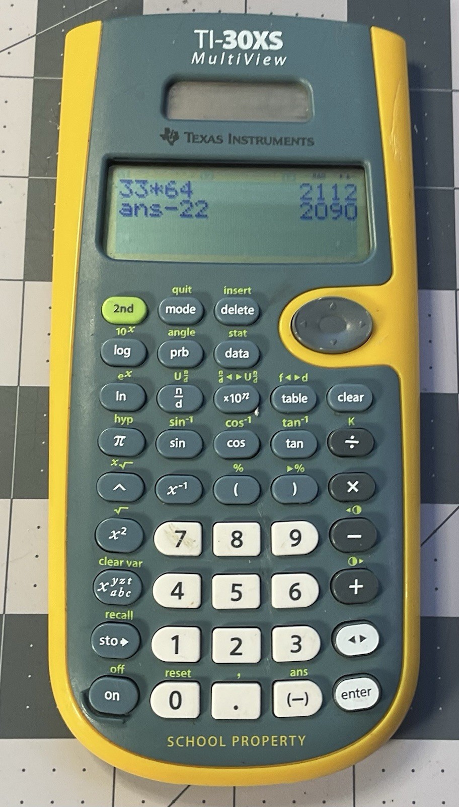 Texas Instruments TI-30XS MultiView Scientific Calculator, Yellow, Tested.