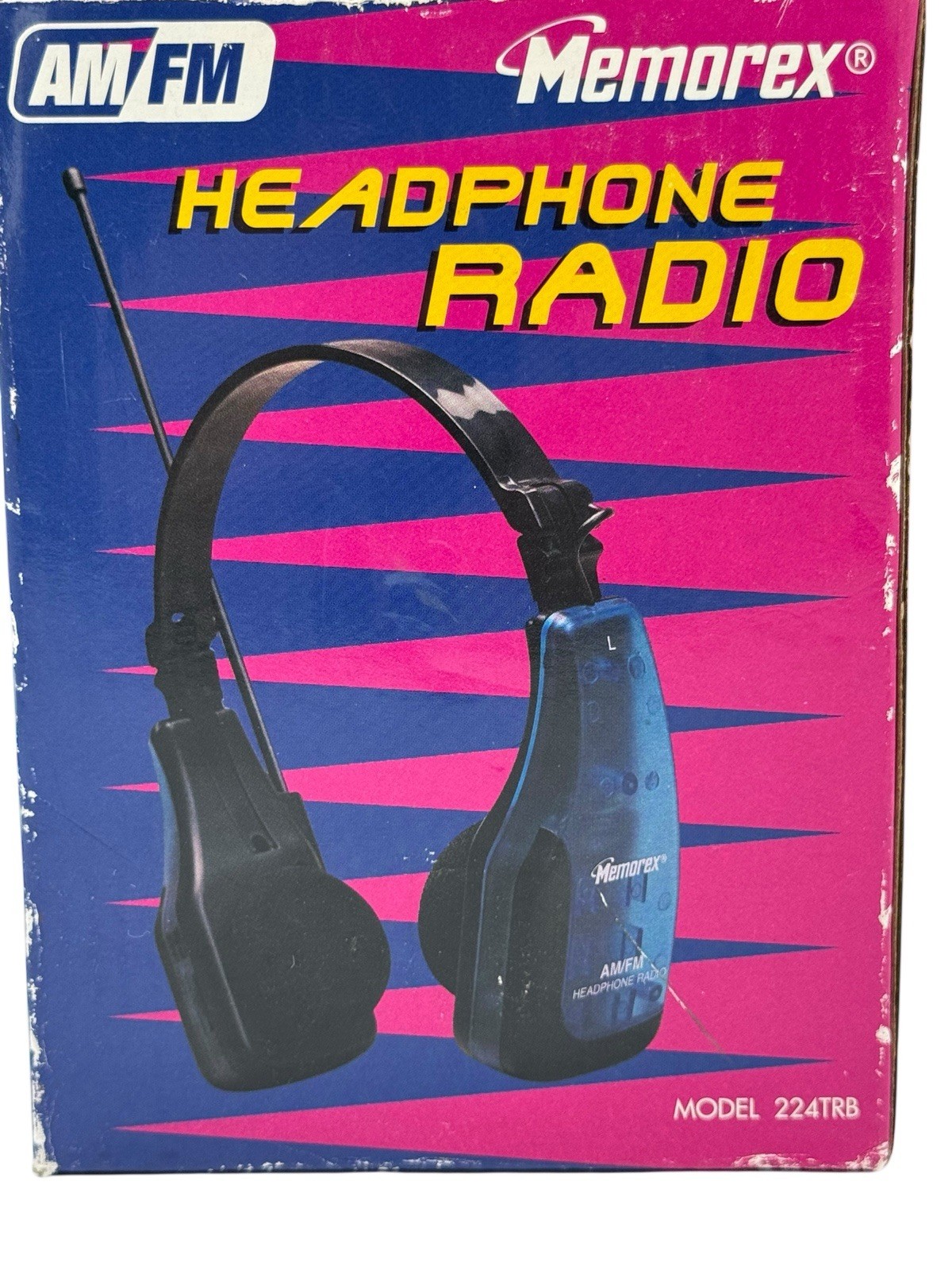 Vtg Memorex AM/FM Headphone Radio Model 224TRB 90s Blue Earphones Tested Works