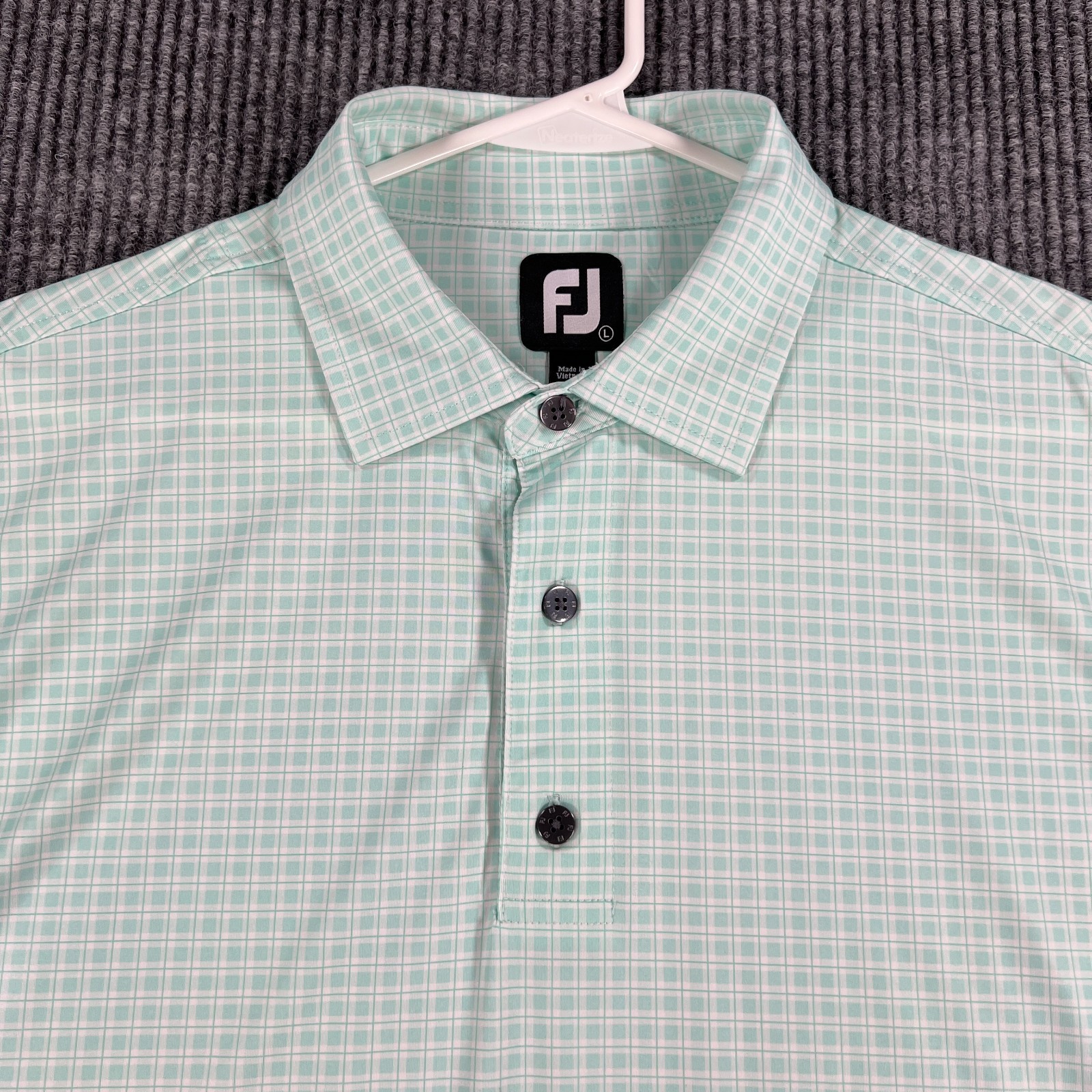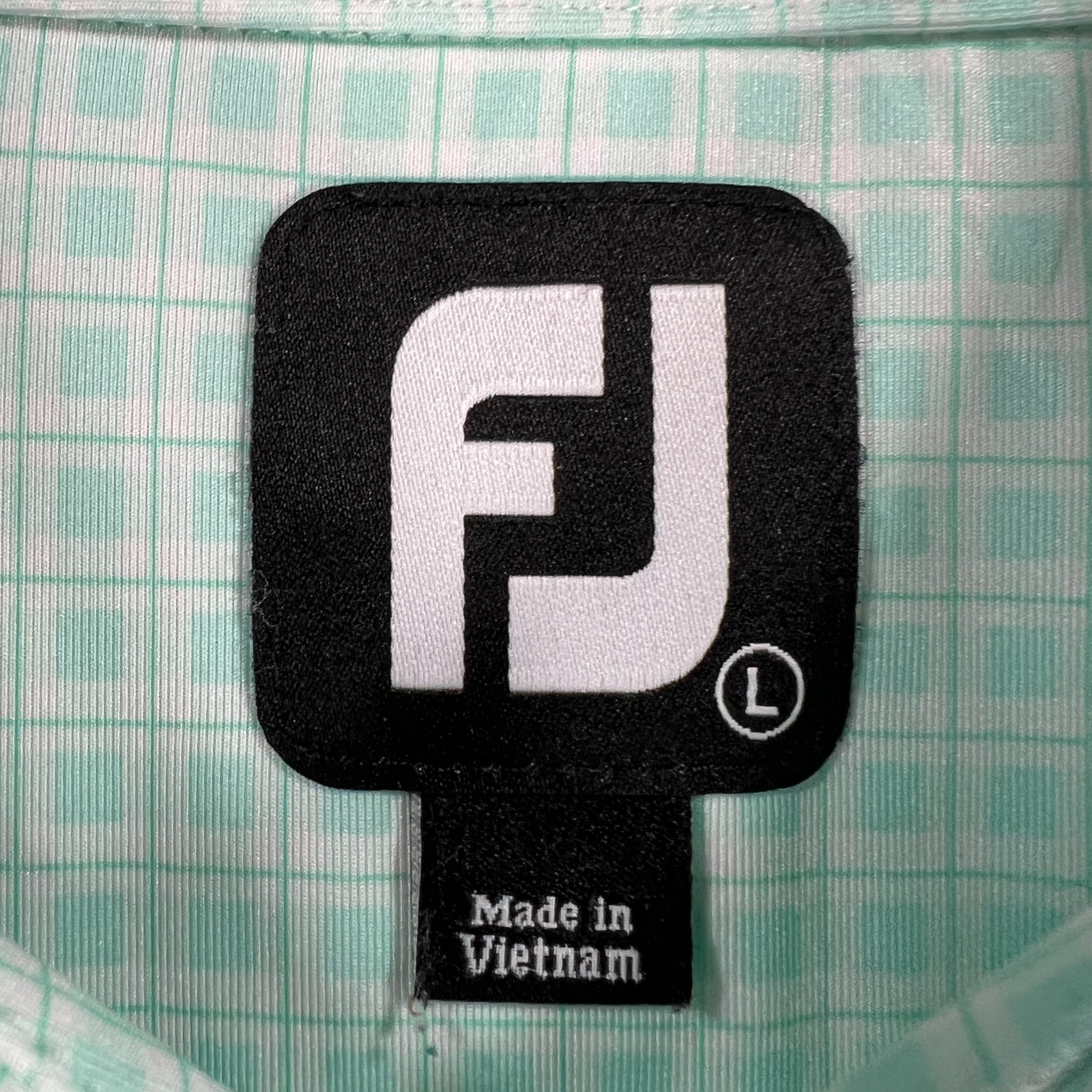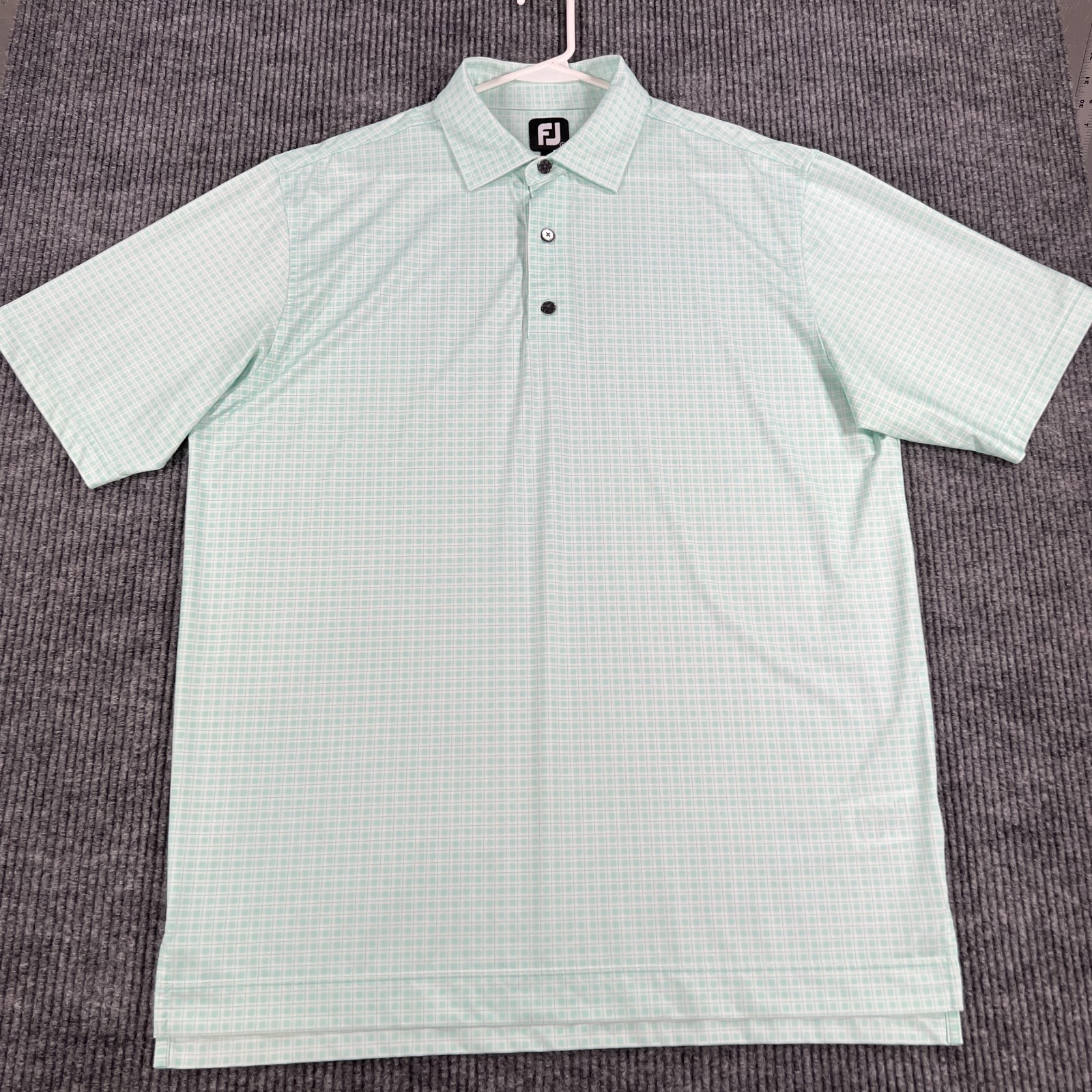 как выглядит FootJoy Polo Shirt Mens Large Green Geometric Short Sleeve Performance Golf фото