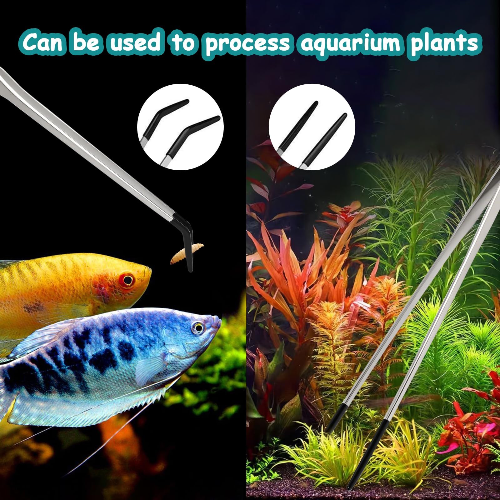 2 Pack Extra Long Stainless Steel Reptile Feeding Tongs with Rubber Silver
