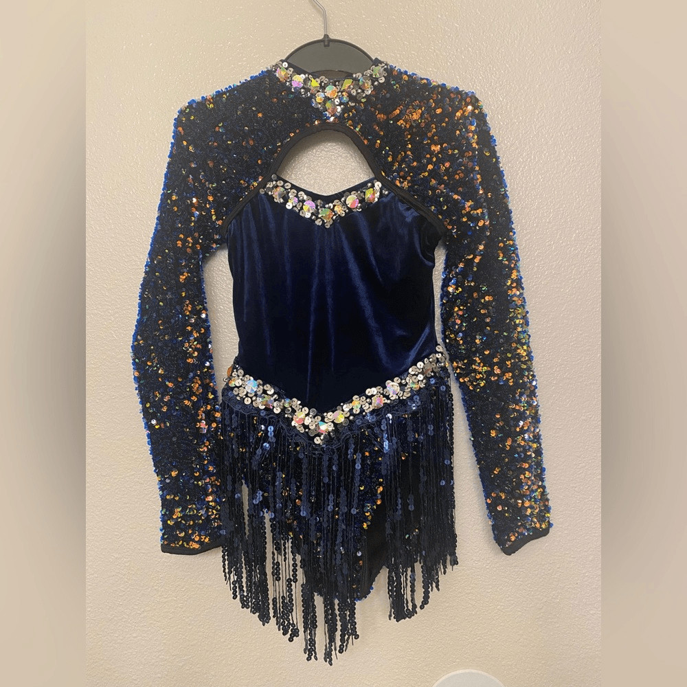 Glamour solo dance costume navy blue ice-skating dress embellished SA NEW