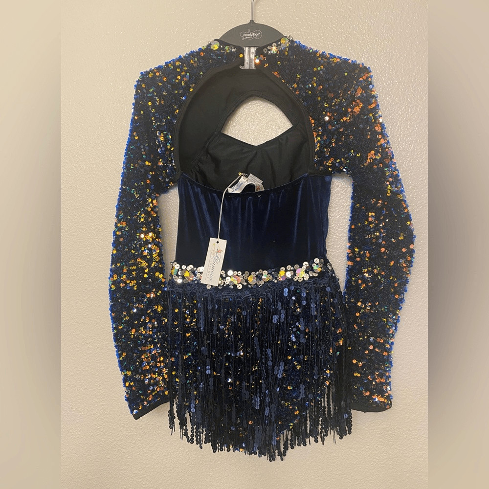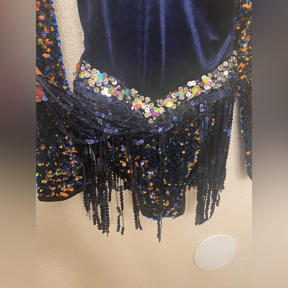 как выглядит Glamour solo dance costume navy blue ice-skating dress embellished SA NEW фото