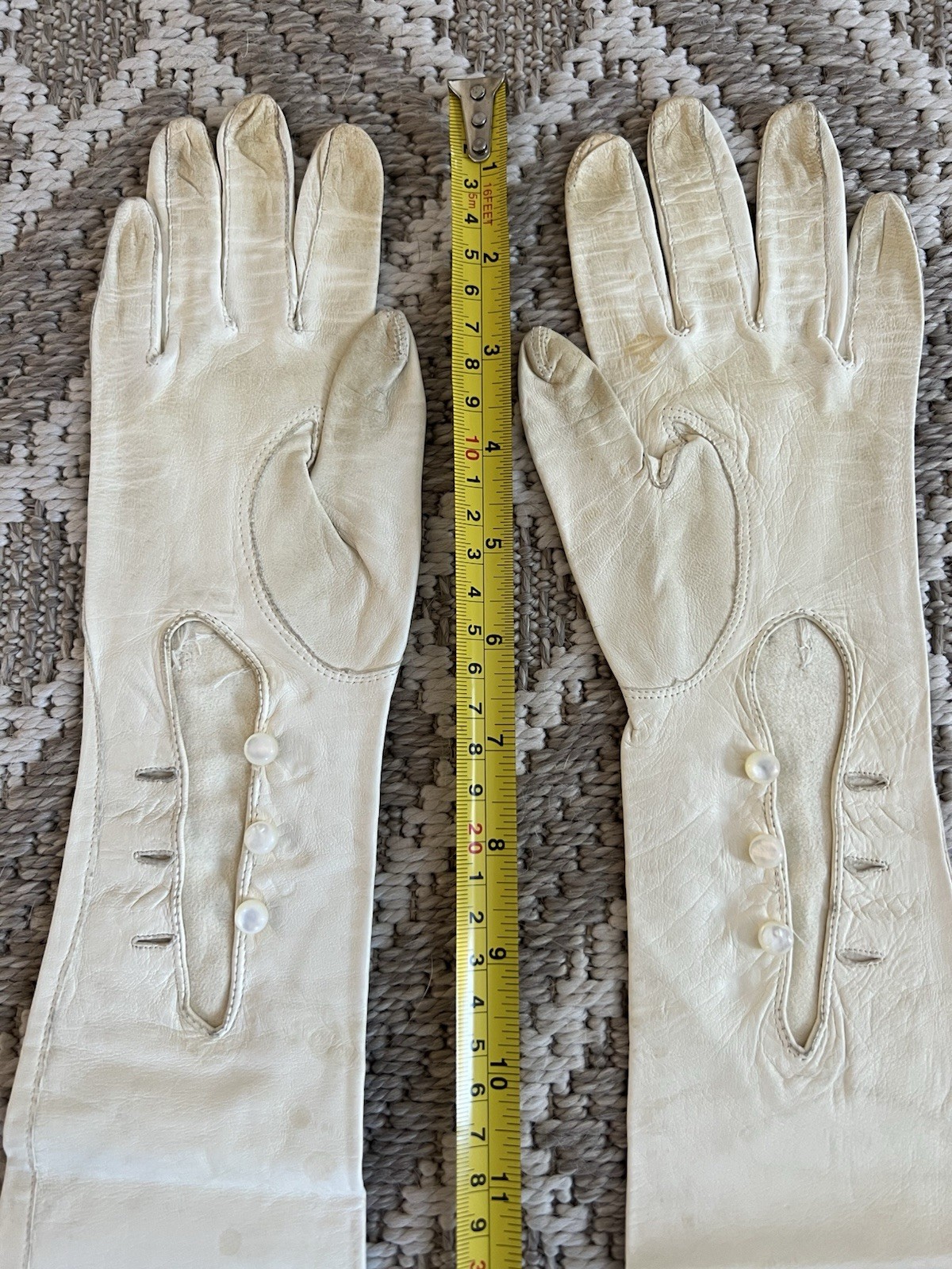как выглядит Glovers Guild Ivory Leather Evening Formal Gloves Size 6 1/4 фото