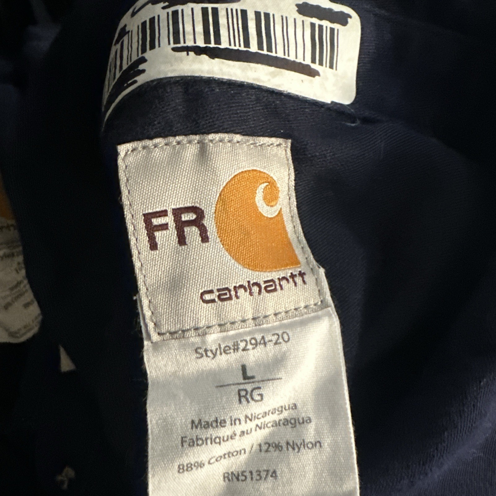 2 Carhartt FR Button Down Navy Blue Cotton Work Shirts Large RG CAT 2 NFPA 2112