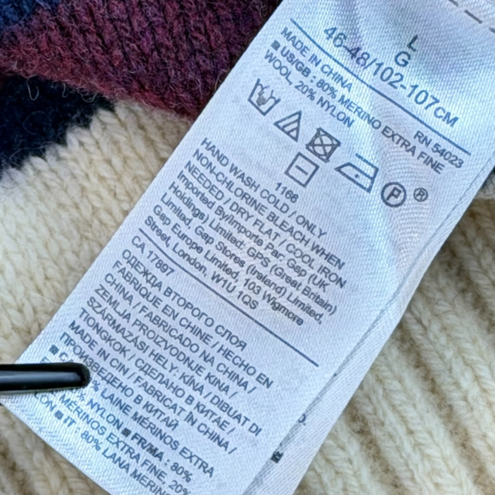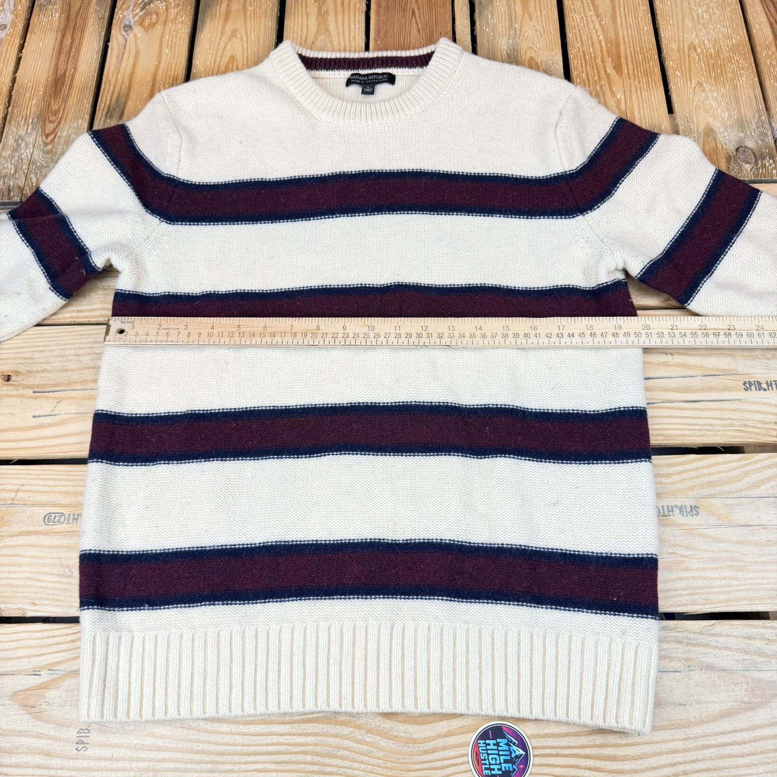 Banana Republic Italian Yarn Merino Wool Striped Sweater Cream Burgundy Men s L