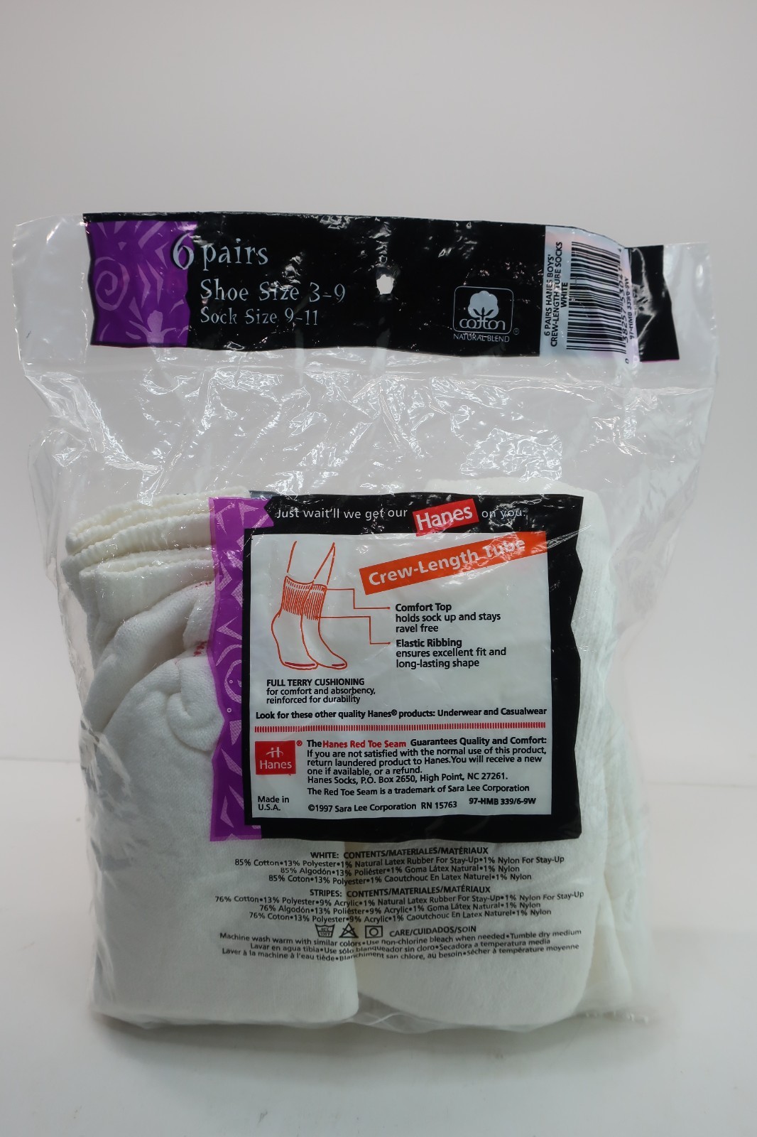 Hanes Vintage 1997 Boys Red Toe Seam Crew Length Tube Socks - 6 Pairs L Size 3-9