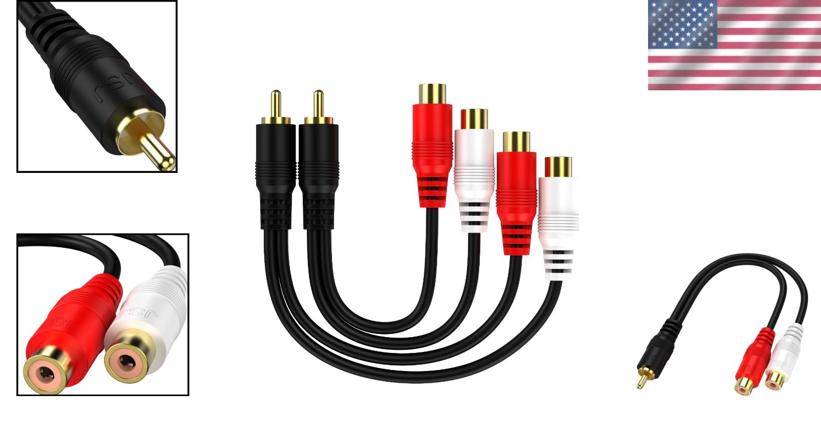как выглядит Dual Shielding RCA 1 Male to 2 Female Y Splitter Cable - Quality, 2 Pack фото