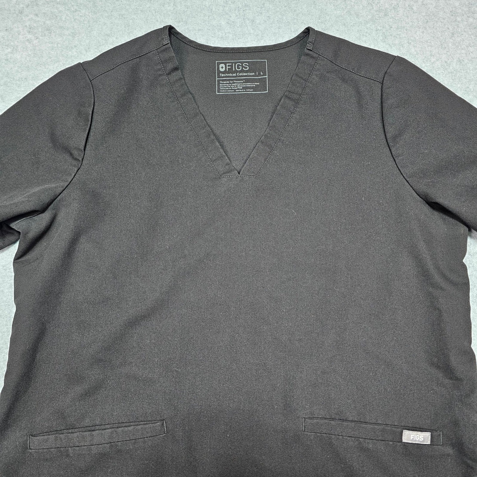 как выглядит Figs Casma Scrub Top Womens Large Black Three Pocket V Neck Workwear FW1100 фото