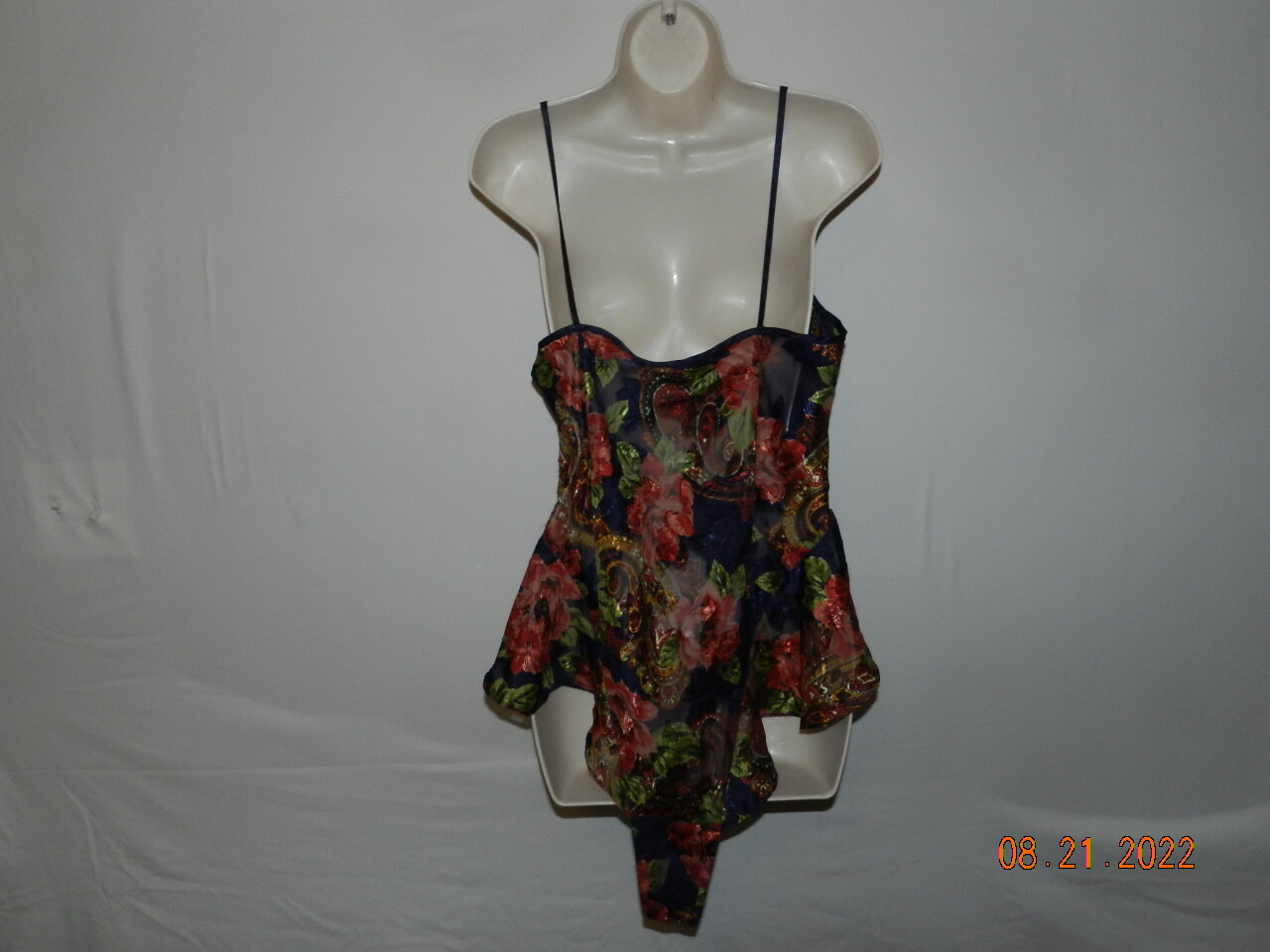 как выглядит TEDDY BODYSUIT LINGERIE VICTORIAS SECRET ROMPER L roses sheer hi-cut gold label фото