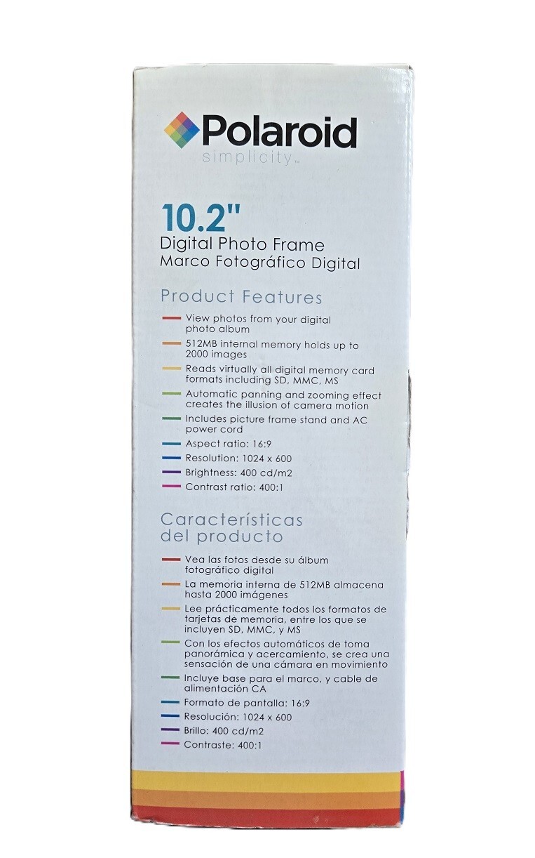 Polaroid 10.2 Digital Photo Frame Color screen high definition 512MB 1024x600
