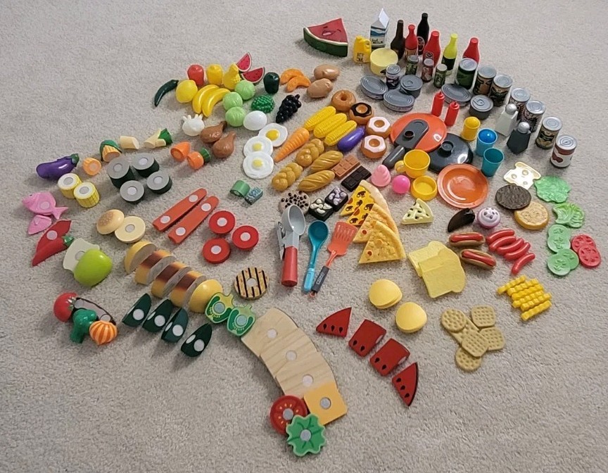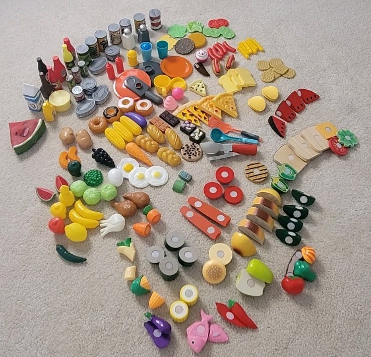 Play Food Toys Plastic Wood Kid Pretend Kitchen Vegetable Fruits Canned 225 Lot