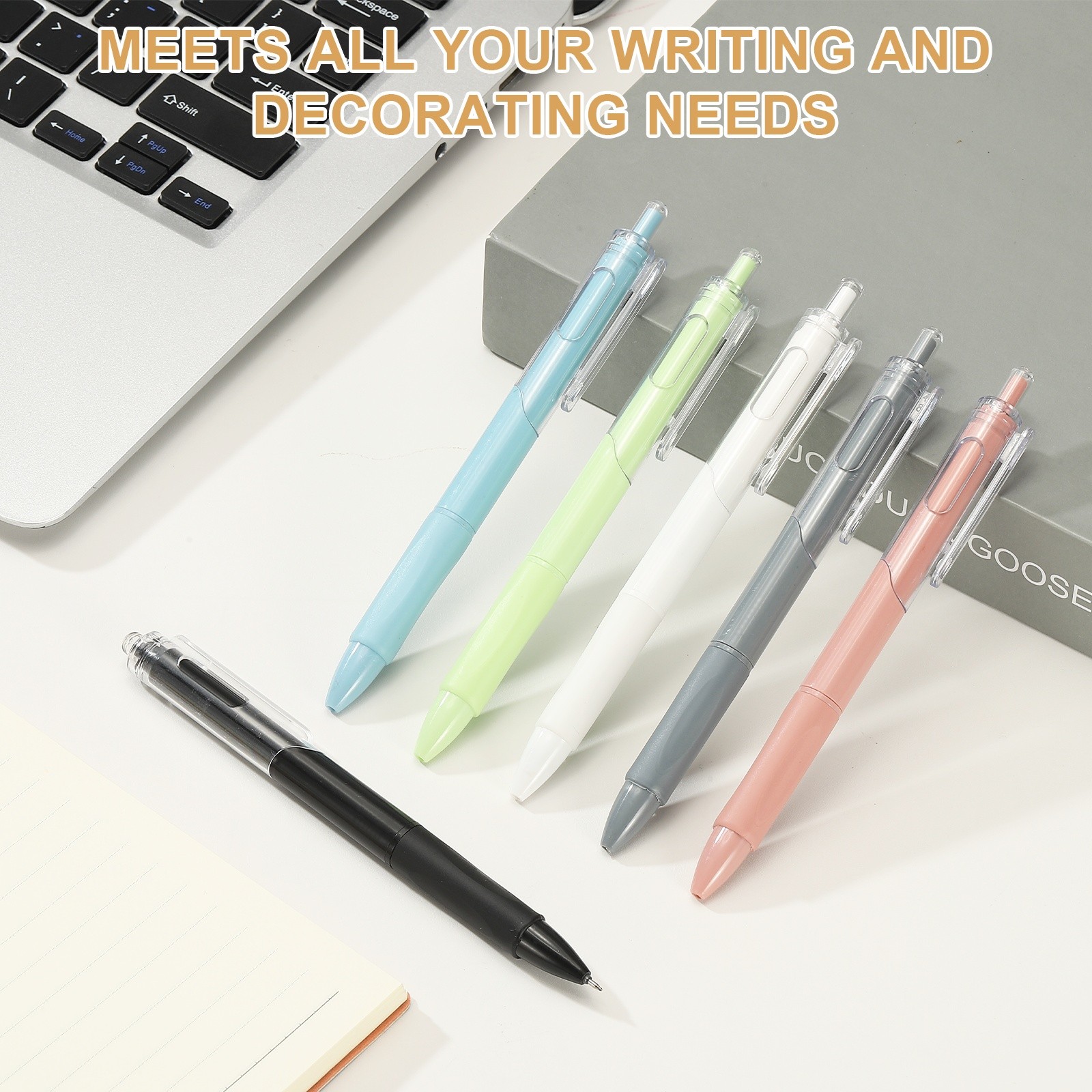 12 Pack Retractable Pens 0.5mm, Black Gel Ink Pens for Note Taking, Pink