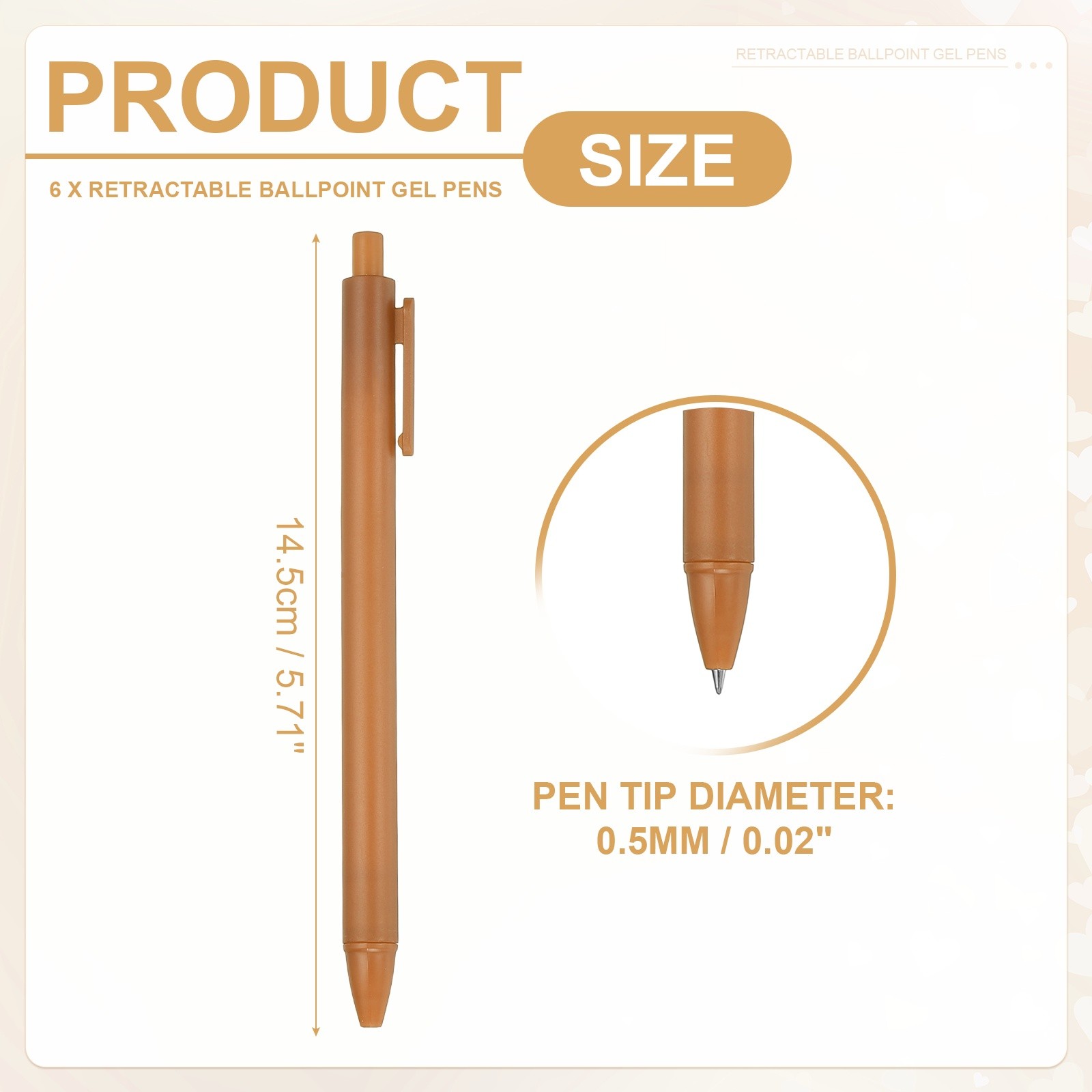 6 Pack Retractable Pens 0.5mm, Black Gel Ink for Office, Brown