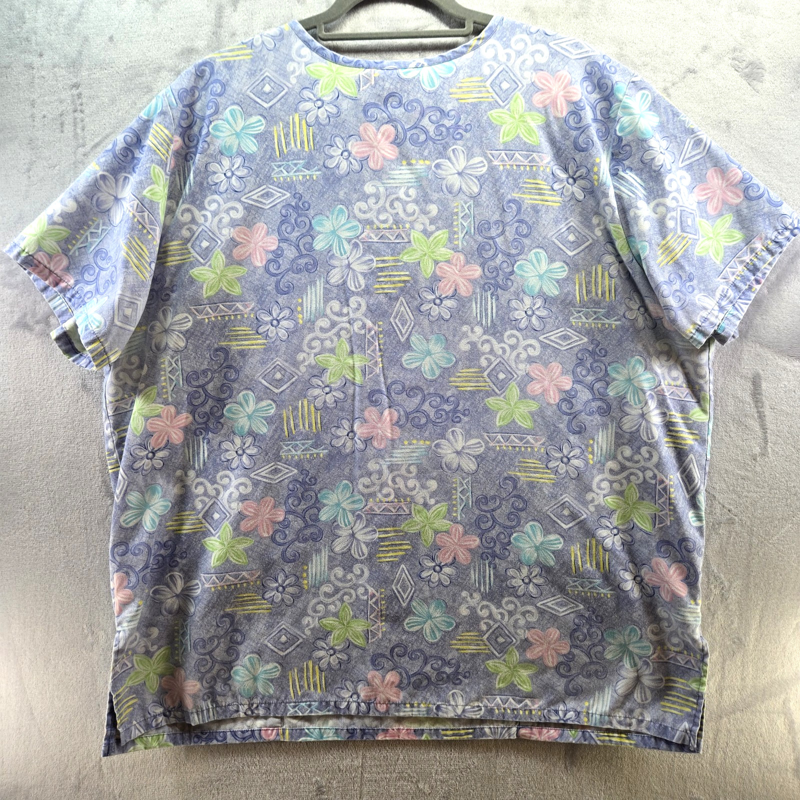 SB SCRUBS Scrub Top Women's Size XL Blue Pastel Floral with Pockets