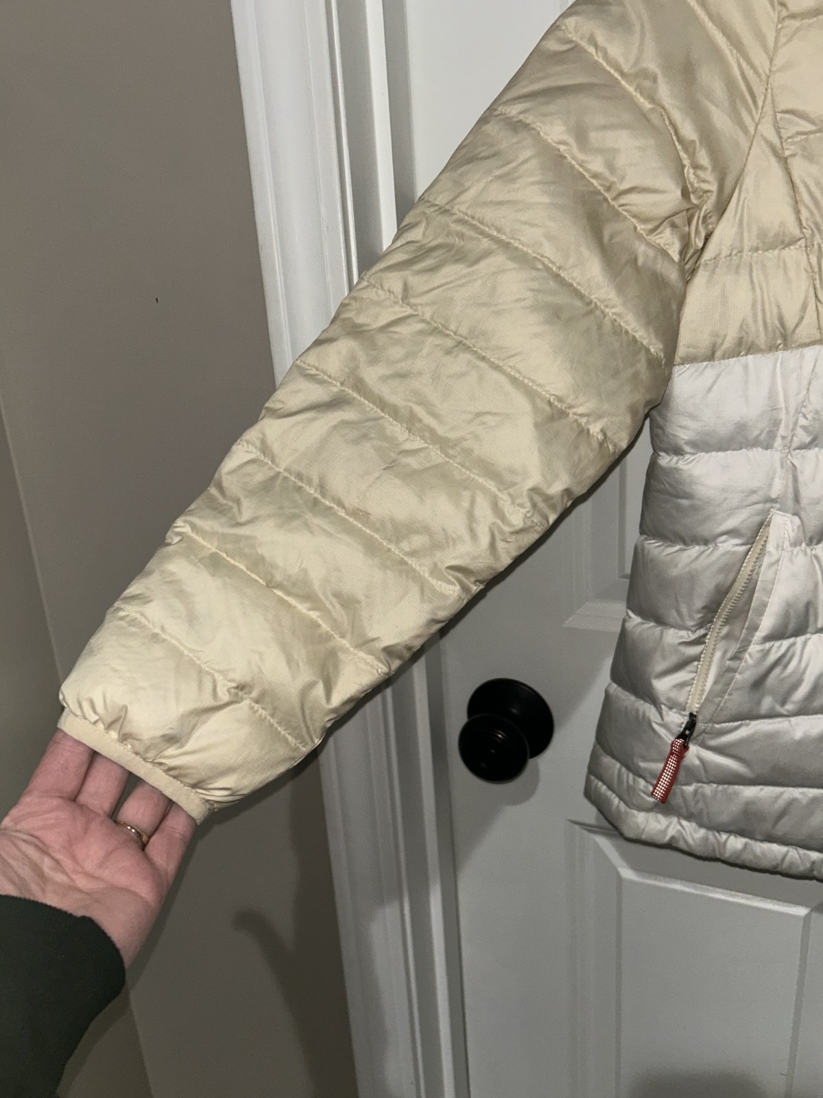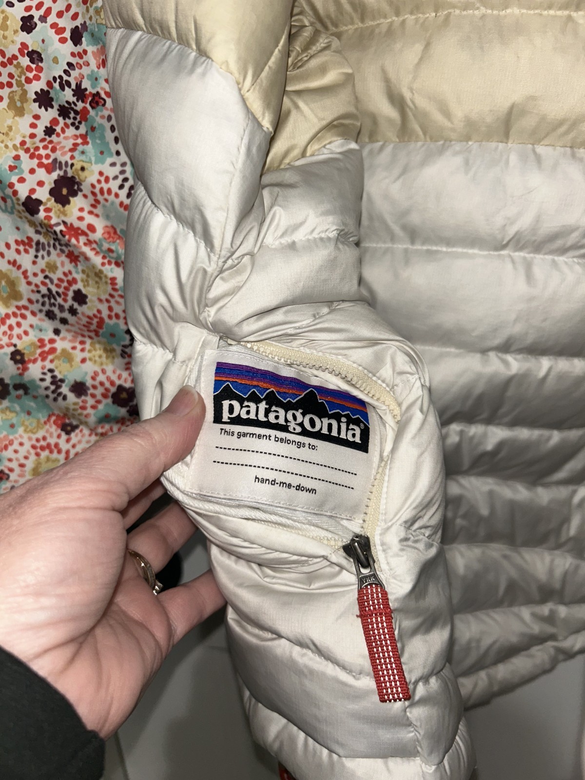 как выглядит Patagonia girls reversible hooded jacket ivory/floral size youth large фото