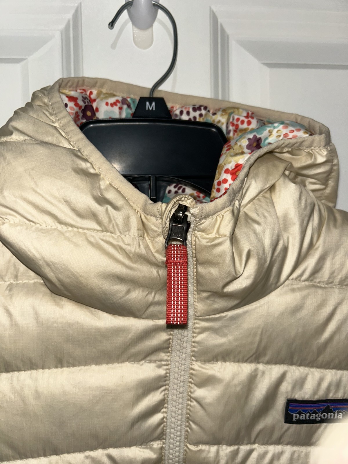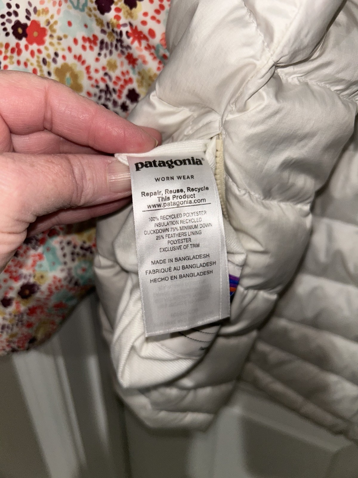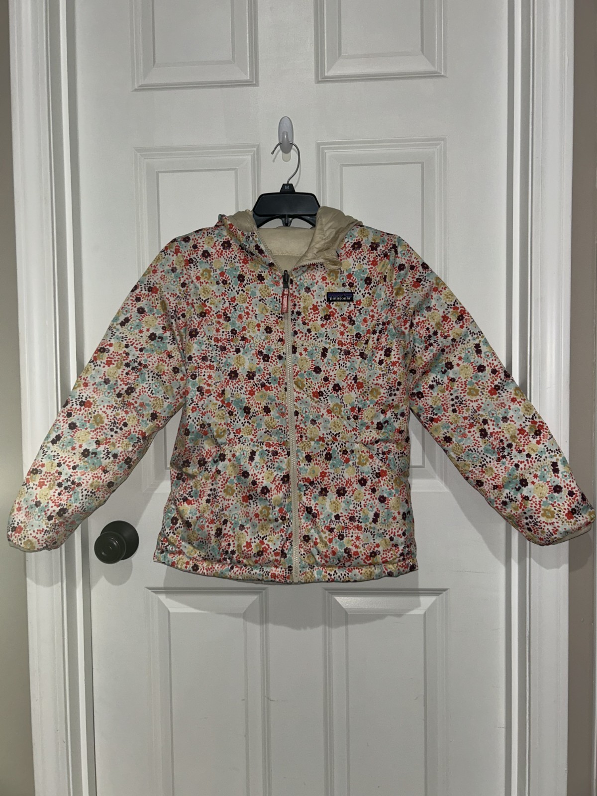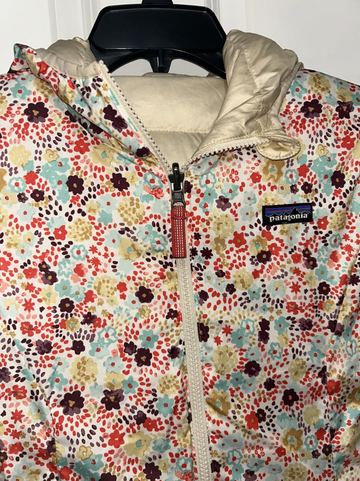 Patagonia girl's reversible hooded jacket ivory/floral size youth large