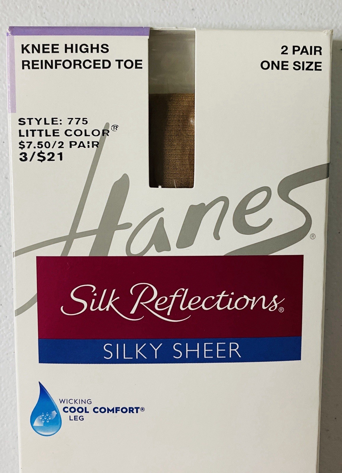 HANES Silk Reflections Silky Sheer Knee Highs LITTLE COLOR Reinforced Toe 2 PAIR